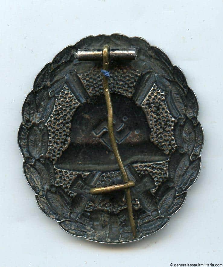 1st pattern wound badge in black – Funke & Brüninghaus, Lüdenscheid. Steel construction wound badge with know F&BL design and setup. Remains in good worn condition with a good part of the finish worn down on the front and little to no signs of rust on the surface. Very appealing and uncommon design that has been found marked L/56.