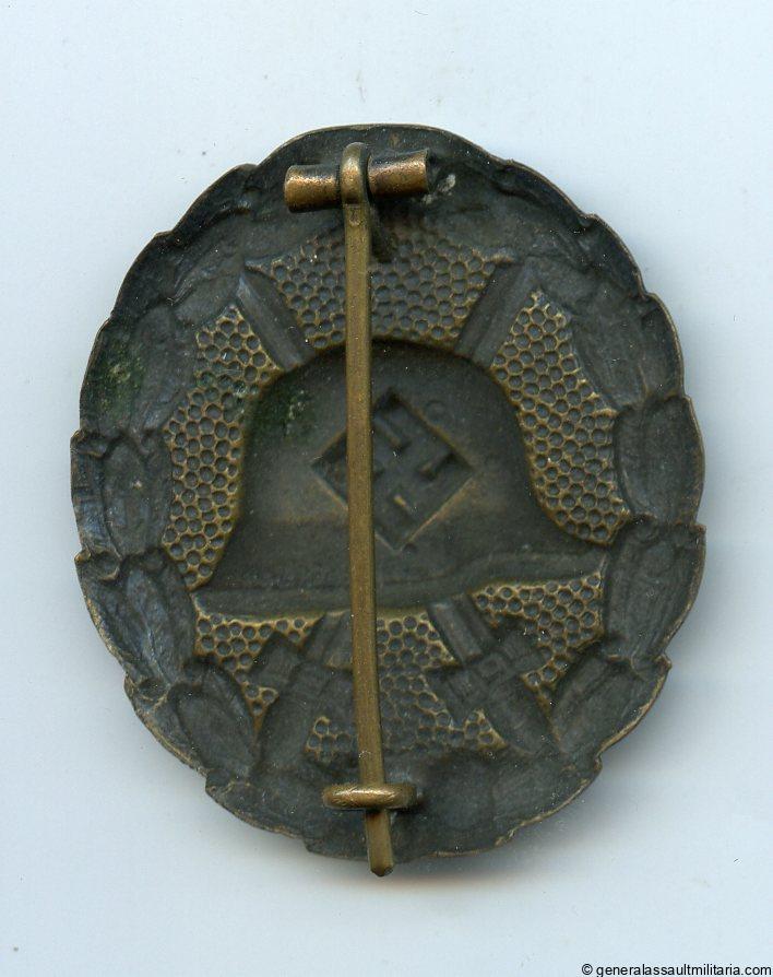 1st pattern wound badge in black – Unknown maker. 1st pattern hollow tombac wound badge with black finish. Remains in good worn condition with about half of the finish worn down but still good sharp details. Good already variant that is far more detailed than the 2nd pattern designs.