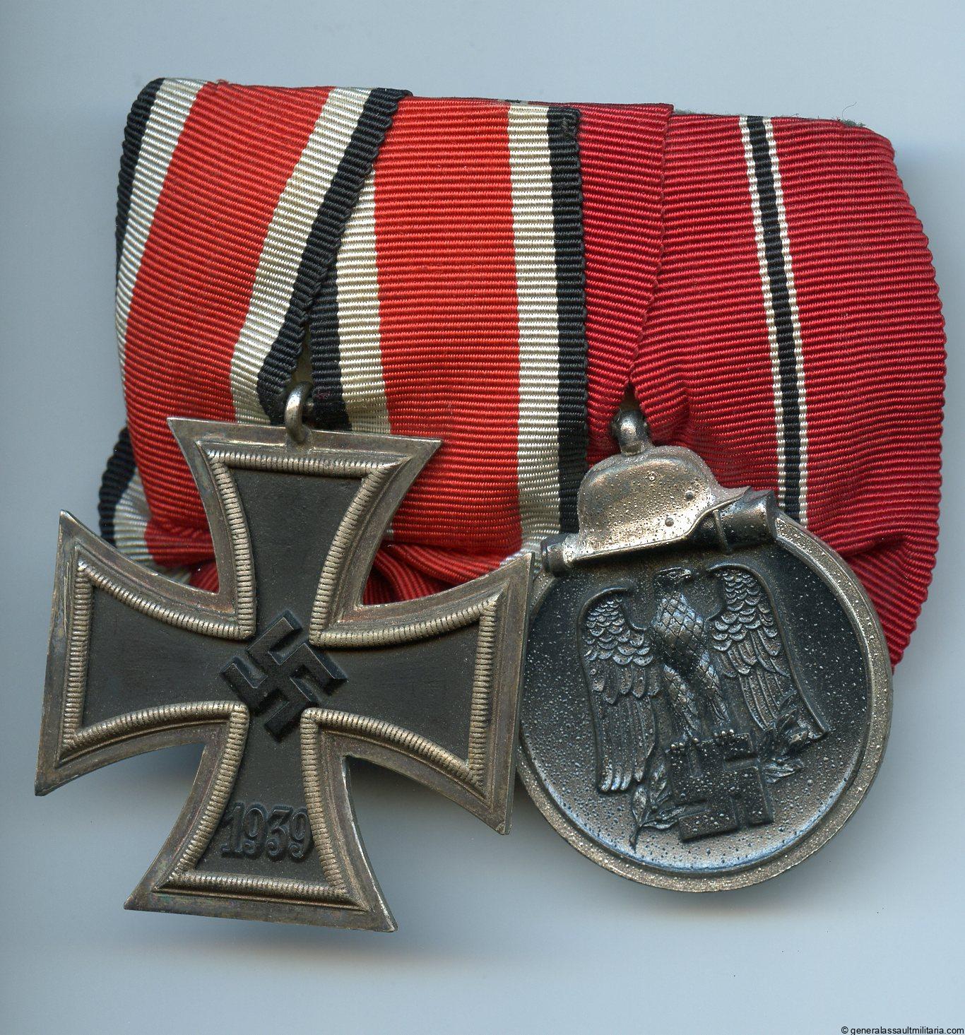 2 piece medal bar with Iron cross 2nd class en Ost medal