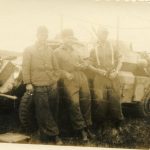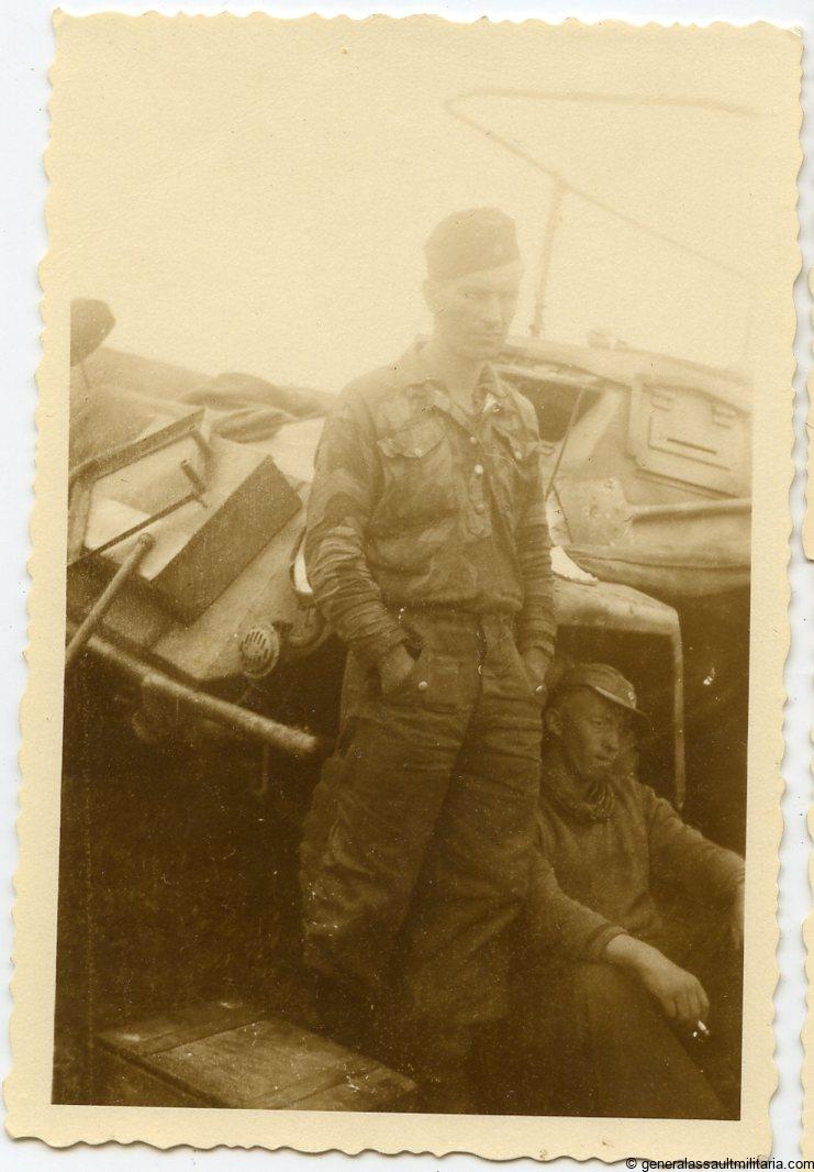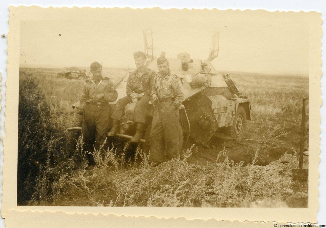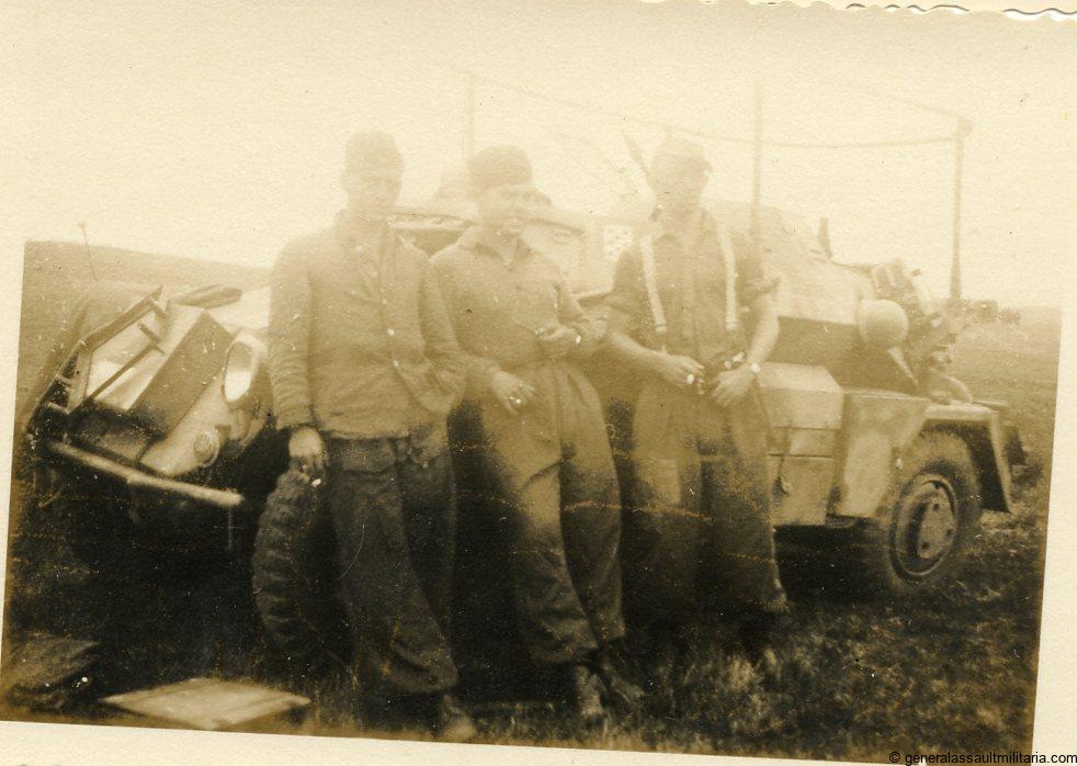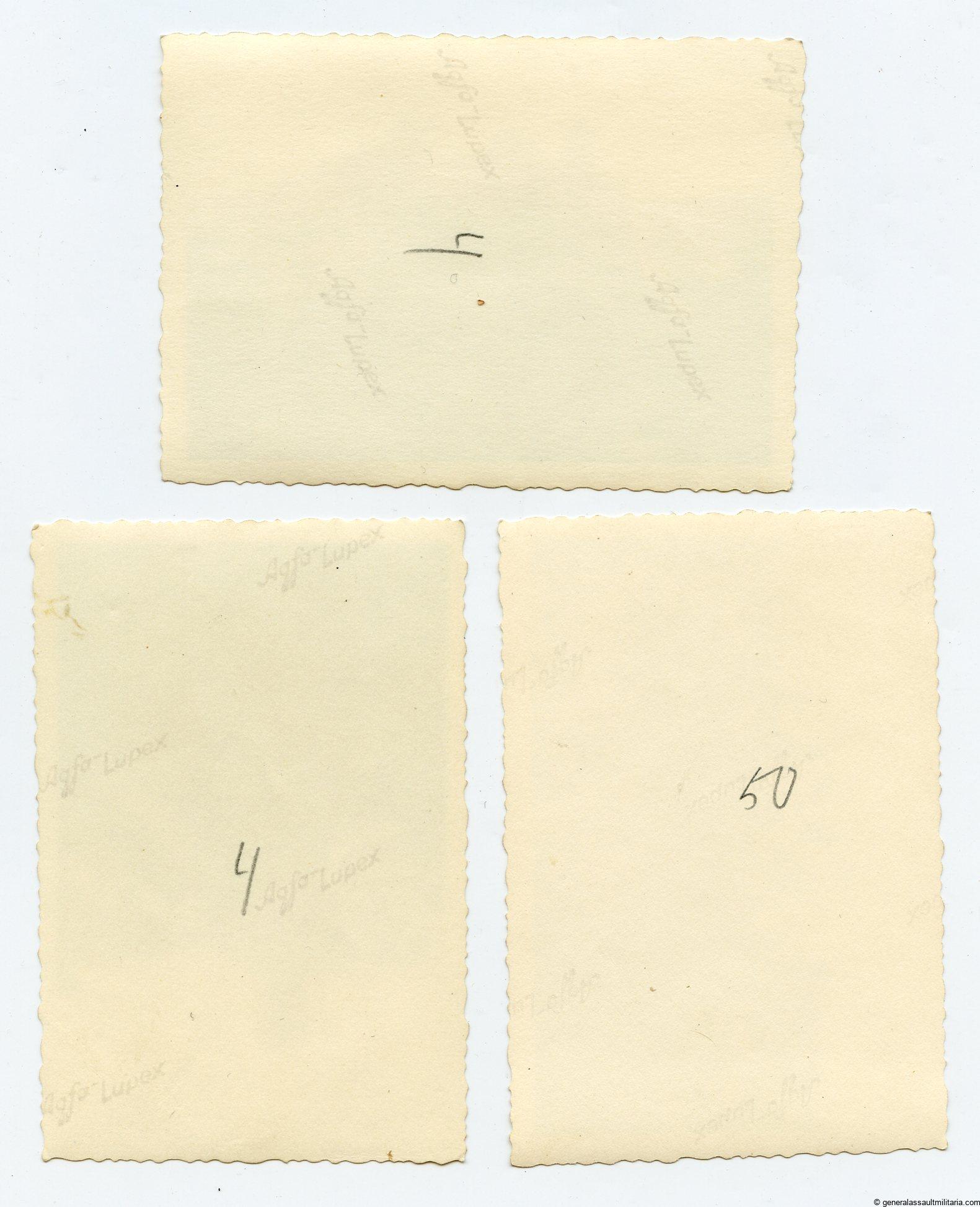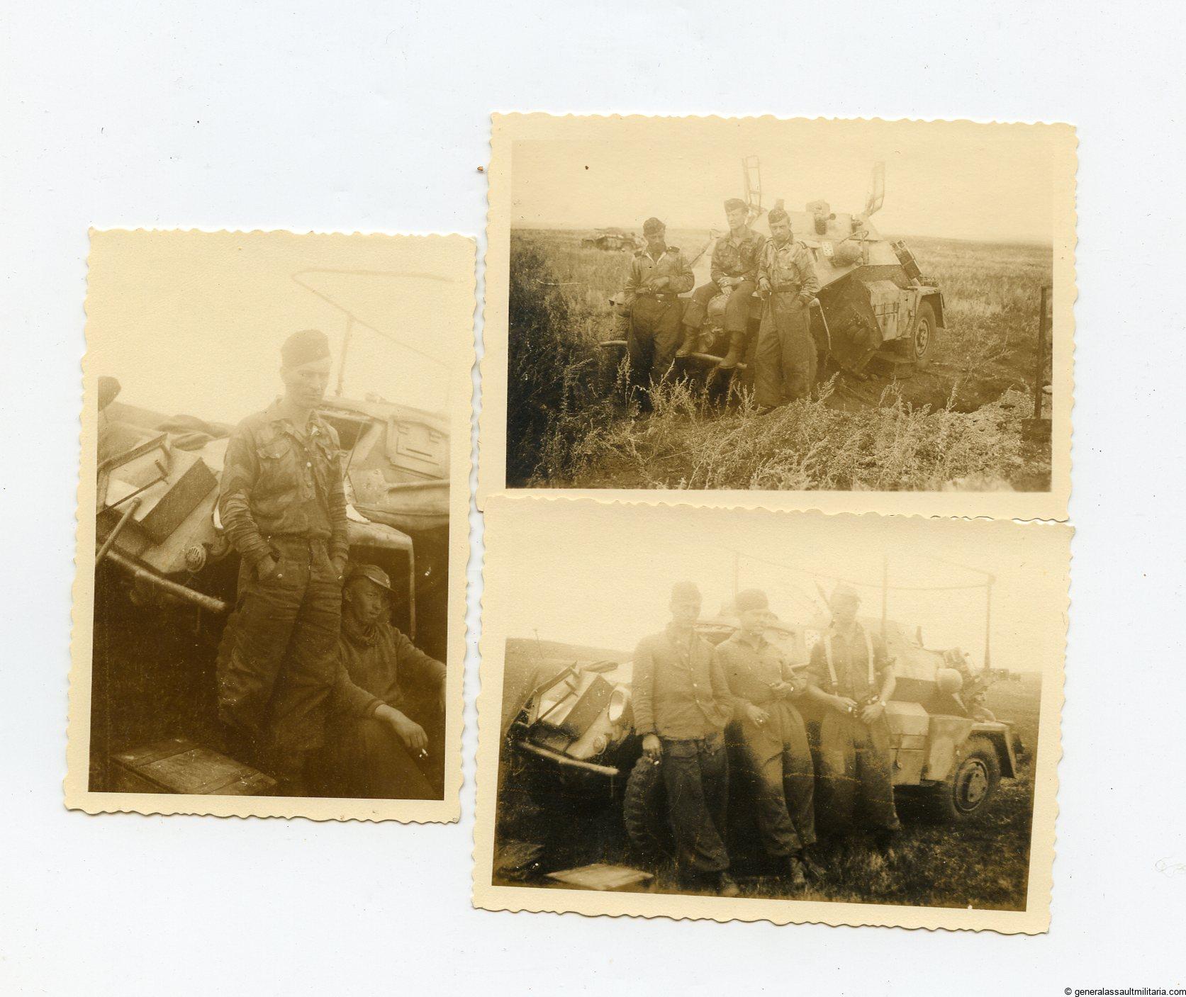 3x Panzerspähwagen Sdkfz 221 and 222 with crew. Three pictures with the Sdkfz 221 and 223 with exhausted looking crew in Splitter camo uniform. Interesting field pictures on period Agfa Lupex paper. 6×9 cm in good condition that have had a bit too much light during developing them on the paper.
