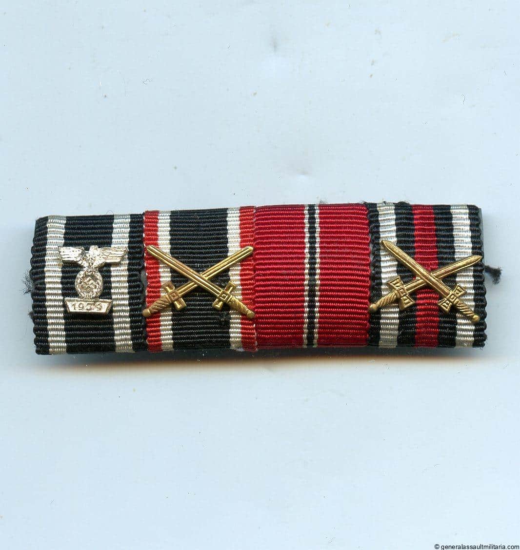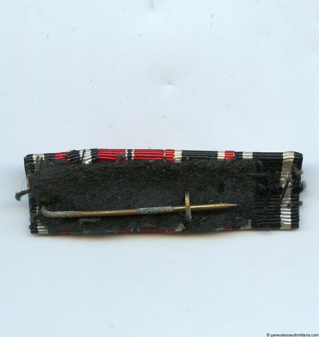 4 piece ribbon bar with Ek2 repeat clasp attachment. The bar has the Ek2 with repeat clasp, KVk2 with swords, Ost medal and Hindenburg cross. Remains in good condition with some slight oxidation to the setup.