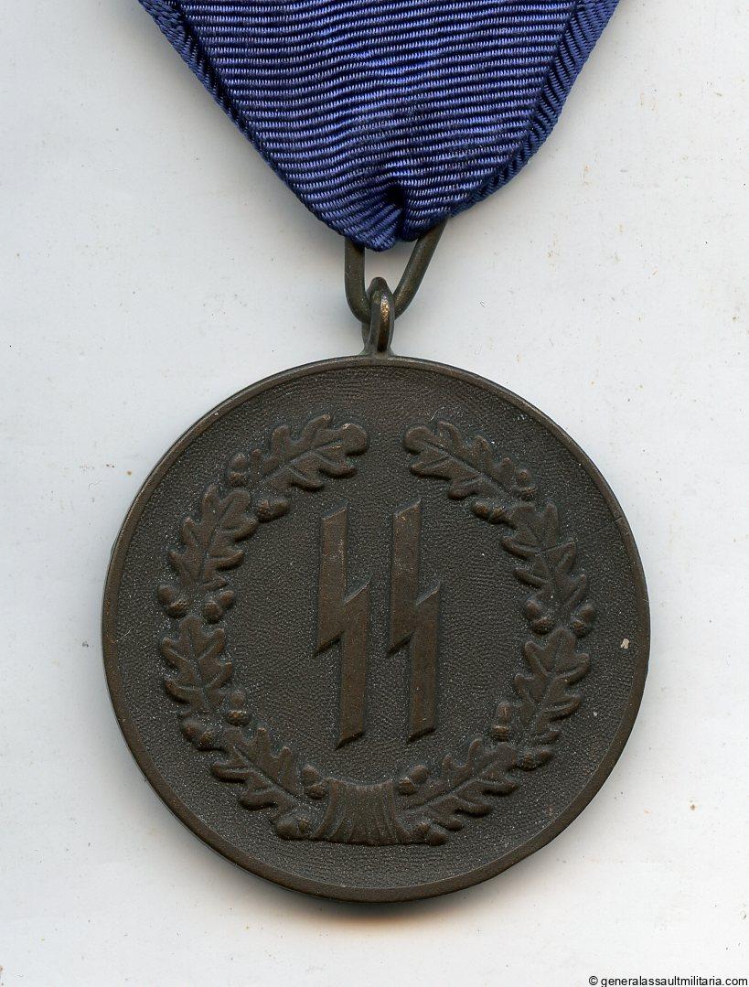 4 year SS service medal – Type II. Tombac construction with dark bronze finish and type 2 design. Remains in excellent condition and shows great finish and details. Comes with an added closed ribbon which is IMo not original. More uncommon than the 8 year service medal and not so easy to find anymore.