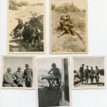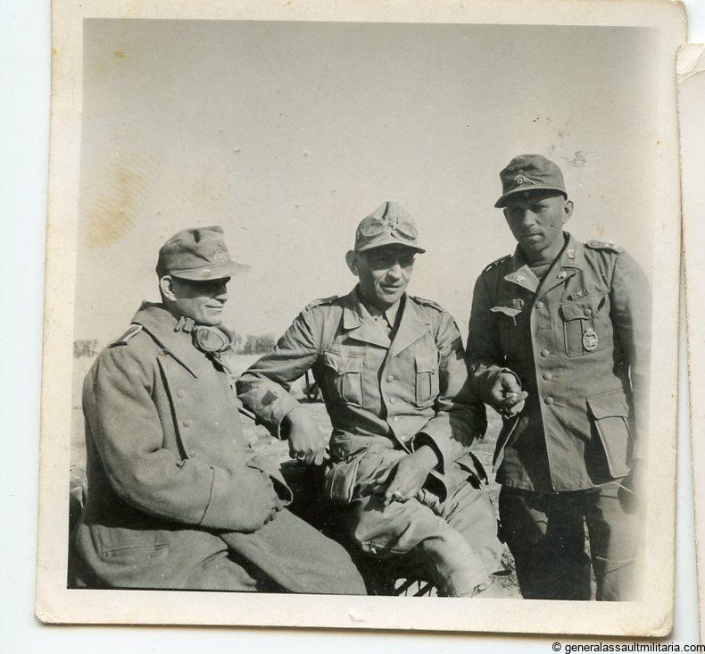 Afrika korps photo lot with cut-out panzer in wear. 5 pictures with one of the soldiers wearing the cu-out PAB on his tropical/Africa uniform. Uncommon and sought after picture.