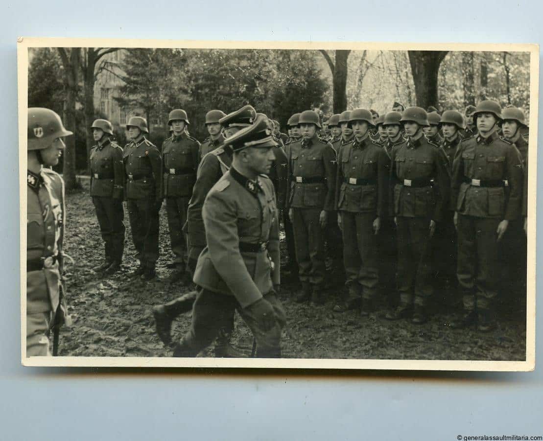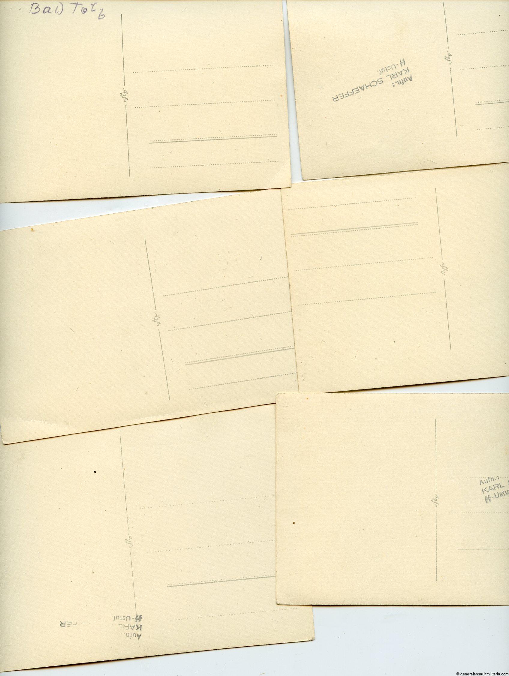 7x postcard size photos taken at SS Junckerschule Bad Tölz. All are produced on period Agfa potrait paper and some are stamped with ‘Aufn.: Karl Schaffer SS-Ustf. All 6 remain in excellent condition with very minimal signs of wear to the corners. Many decorated officers and recruits visible. Very difficult to find a 6 piece set in this quality and size.