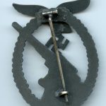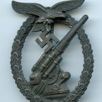 Luftwaffe Flak badge – Assmann & Söhne, Lüdenscheid. Mid to late war zinc Flak badge with Assmann makers mark on the back. Typical greyish look form the faded silver wash and remains in unworn to lightly worn condition. Very nicely preserved makers mark flak by a quality award producer.