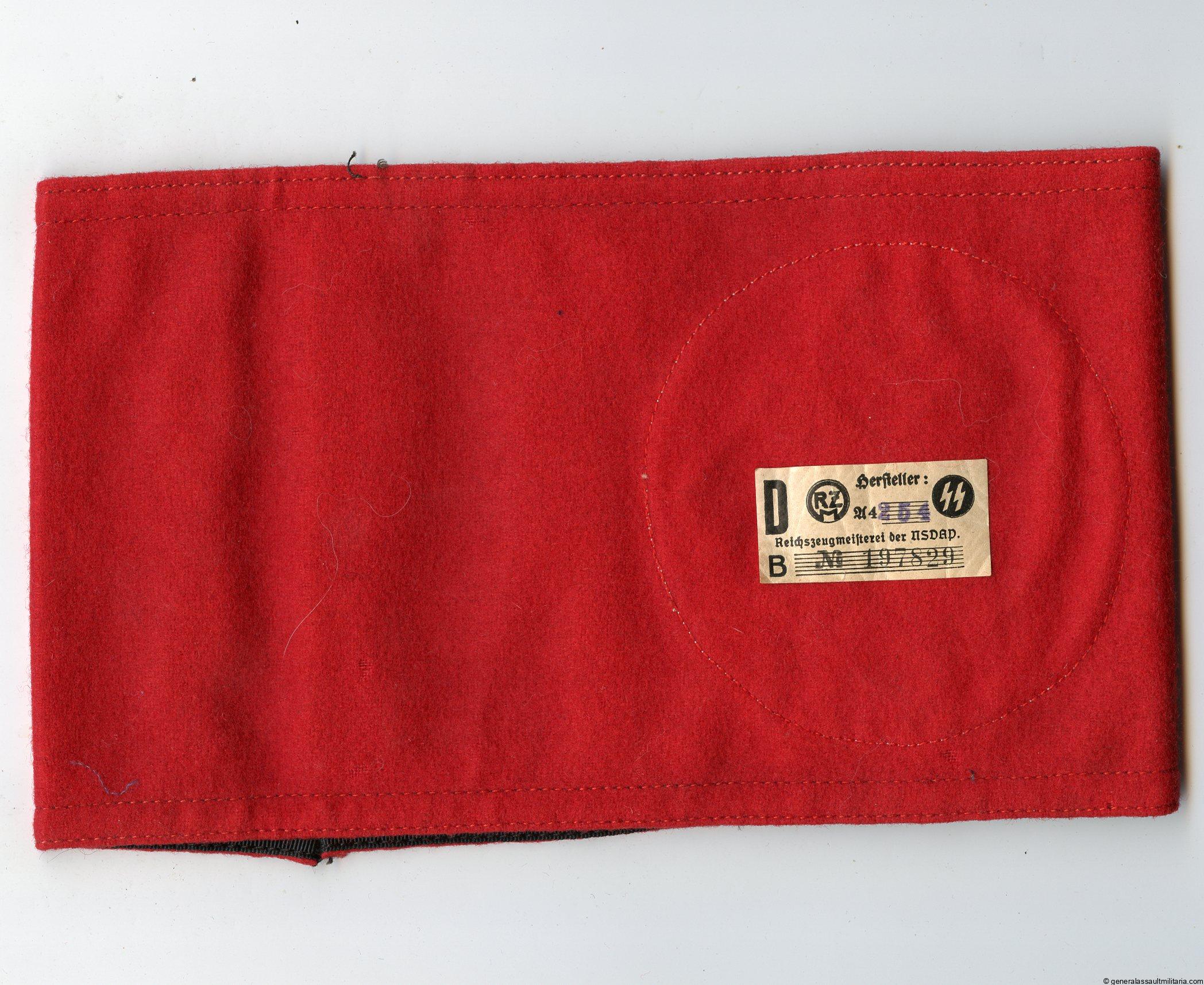 Allgemeine SS/VT Armband – RZM tagged. Early pre war red wool ‘Armbinde’ for wear on the black SS uniform. Remains in very good condition with only one moth hole on the back. Still has the original and correct ‘D’ paper RZM tag still present. Shows no sign of having been stitched to the uniform. Excellent piece.