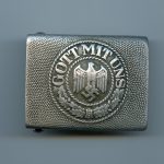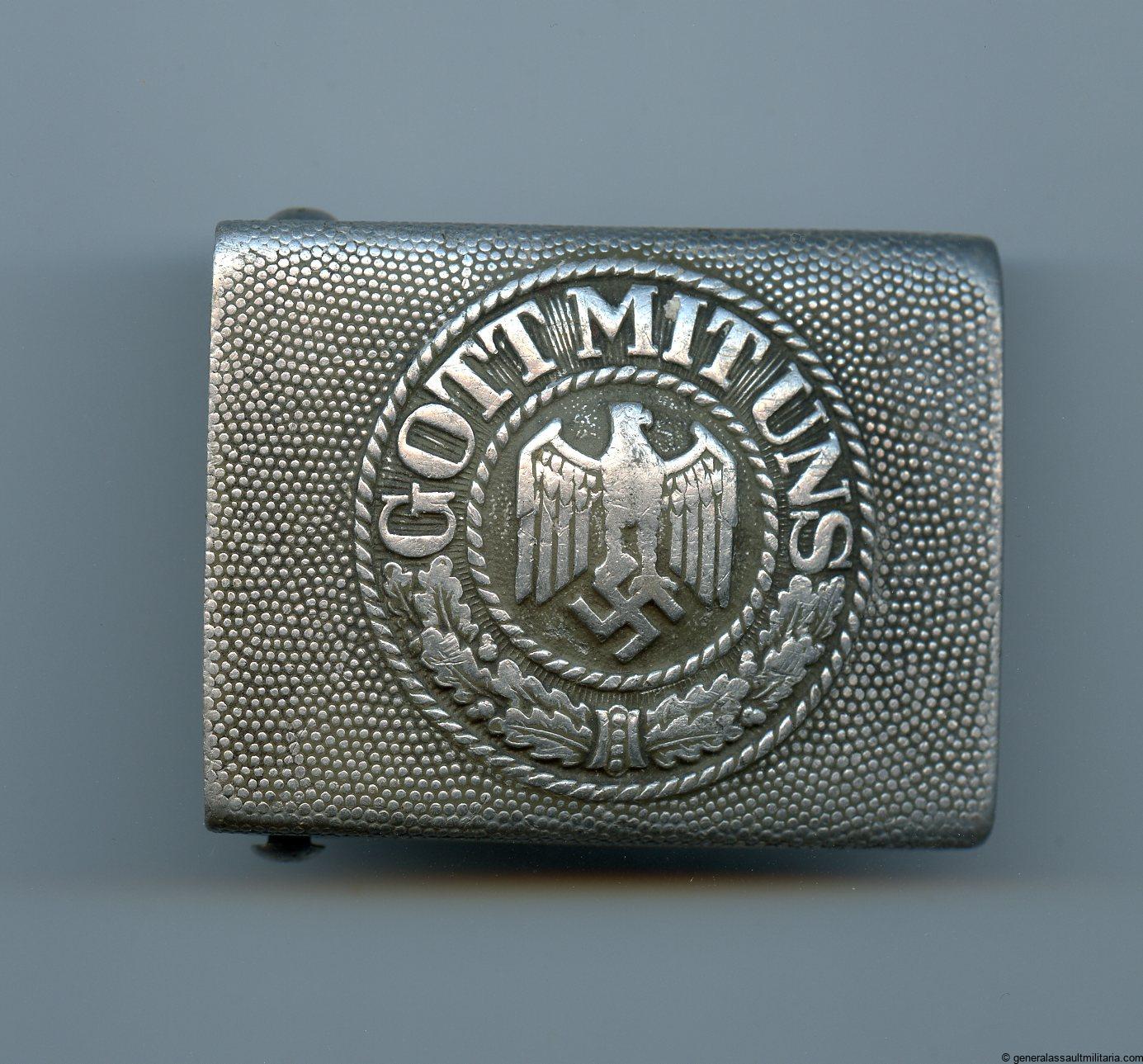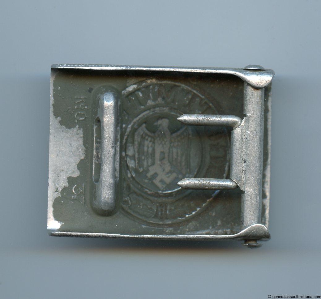 Aluminium Heer buckle K&Q 37. Early aluminium buckle in well used condition. Some traces of the paint the green paint remain on the front and back. Nicely marked K&Q and 37 for the production year 1937.