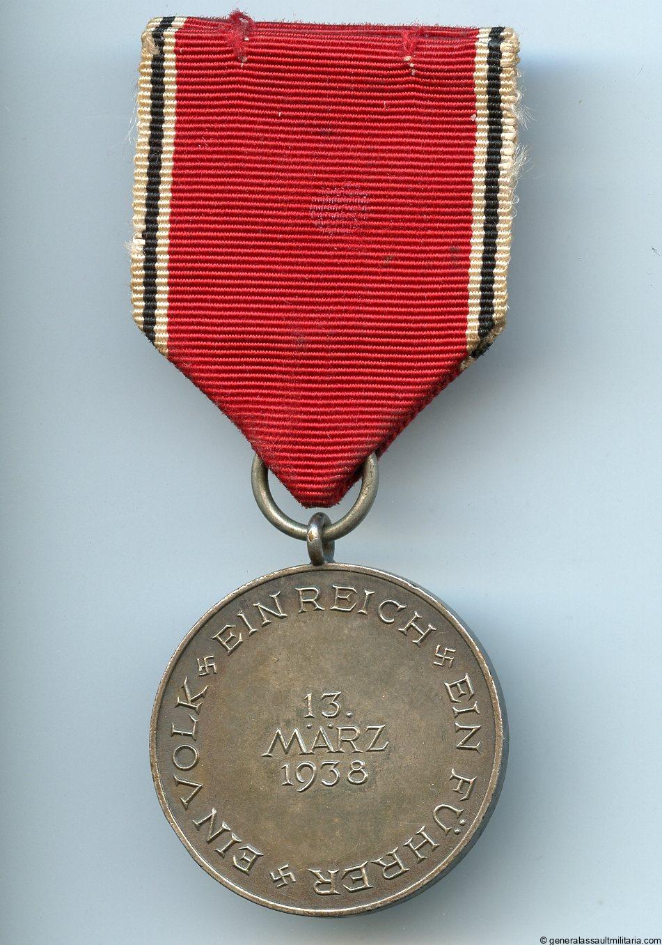 Austria annexation medal. Tombac medal with silver plated finish for the Austrian annexation in 1938. Remains in excellent condition with the ribbon and setup device.