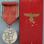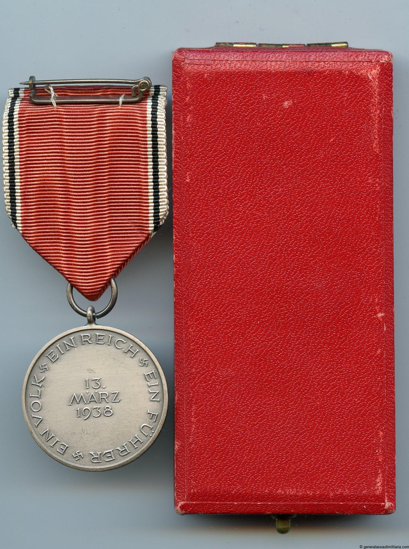 Austria annexation medal + case. Early tombac anschluss medal with silver plating in very good condition. Comes with matching case in used condition, small pitting damage on the top but overall nicely preserved.