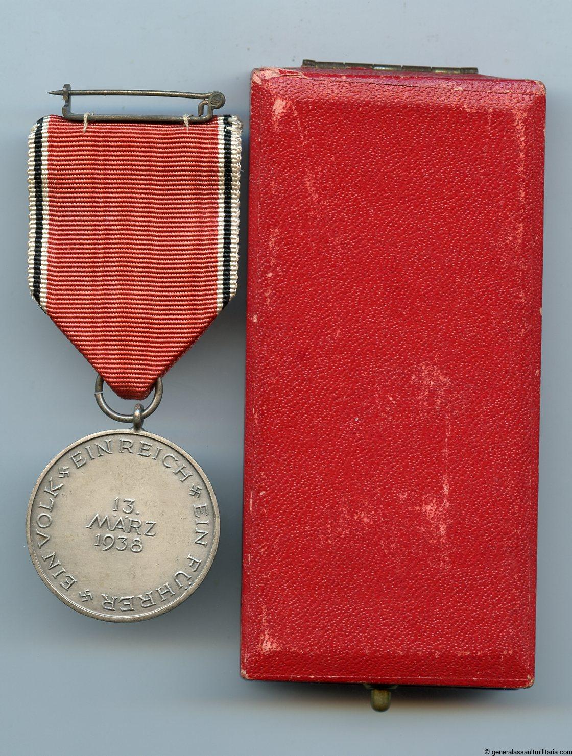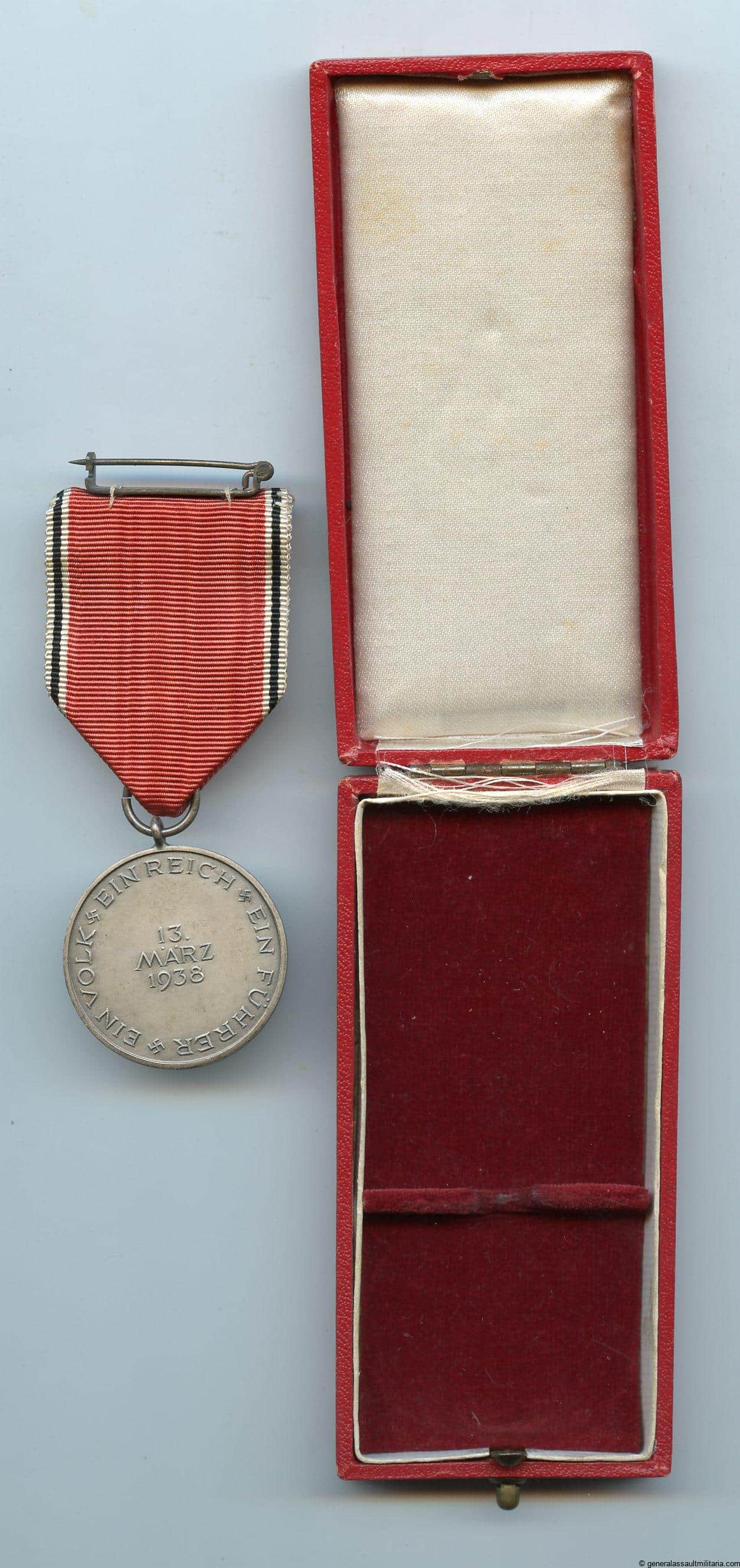 Austria annexation medal + case. Tombac ‘Anschluss Medaille’ with silver plated finish. Remains in excellent condition and has the original ribbon with setup device still attached. Comes with matching case that shows some slight usage on the outside.