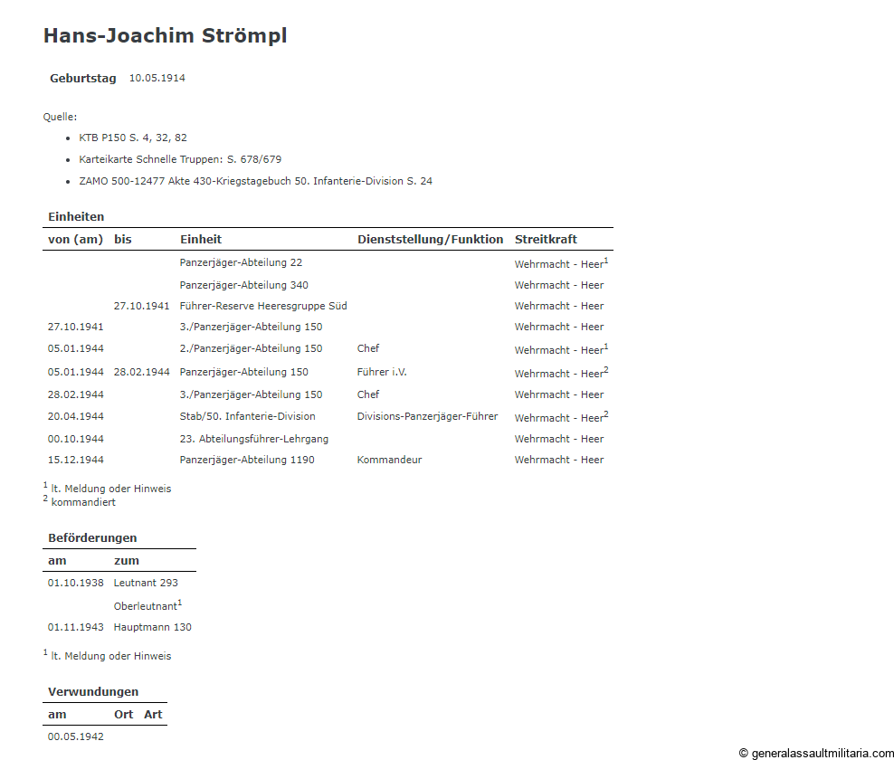 The last picture contains the career history of Strömpel. Strömpel was awarded his Ek1 for the short time he spent with the second kompanie of the Pzj. Abt. 150 which consisted of 4-5 Marder Selbstfahrlafette in jan/feb 44.