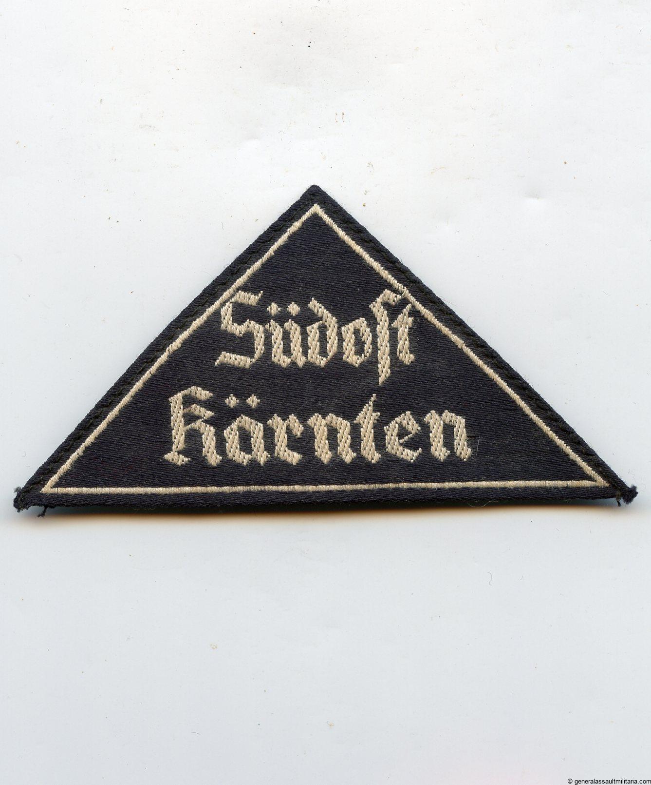 BDM triangle – Süd Kärnten. Woven construction example in unissued condition. Still has the original RZM tag on the back and was intended for ‘Bund Deutscher Mädel’ members.