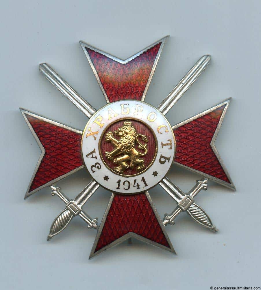 Bulgarian Bravery medal IV. 1st class – C.F. Zimmermann, Pforzheim. 1941 version of the Bulgarian bravery medal, mostly awarded to officers and often seen with the LAH officiers that fought in Bulgaria 1941. Remains in perfect mint condition and shows full frosting and perfect enamel. Has the typical Zimmermann setup. Bulgarian award but was fully produced by German makers and can only be found as such. Top example!