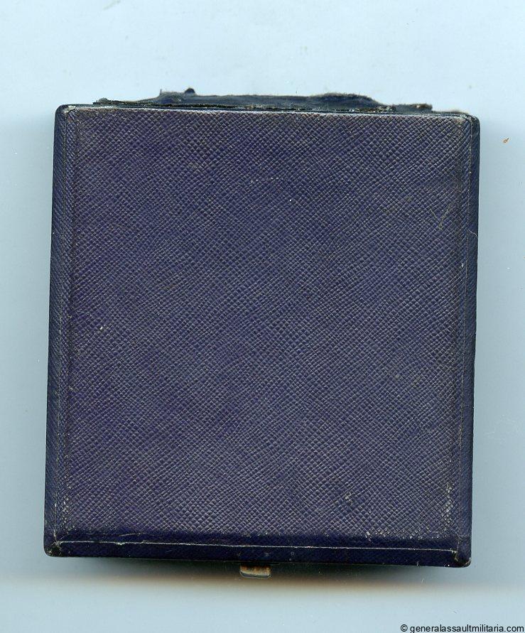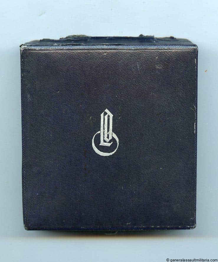 Case for a Spanish cross in silver 1st Pat. LDO(!). Early war blue case for the Spanish cross in silver with soft blue inlay. Remains in excellent condition with minimal wear to the corners and some wear to the paper flap covering the hinge. Extremely rare example that has the LDO logo on the front. Only the 1st time we have been able to offer such an example for sale.