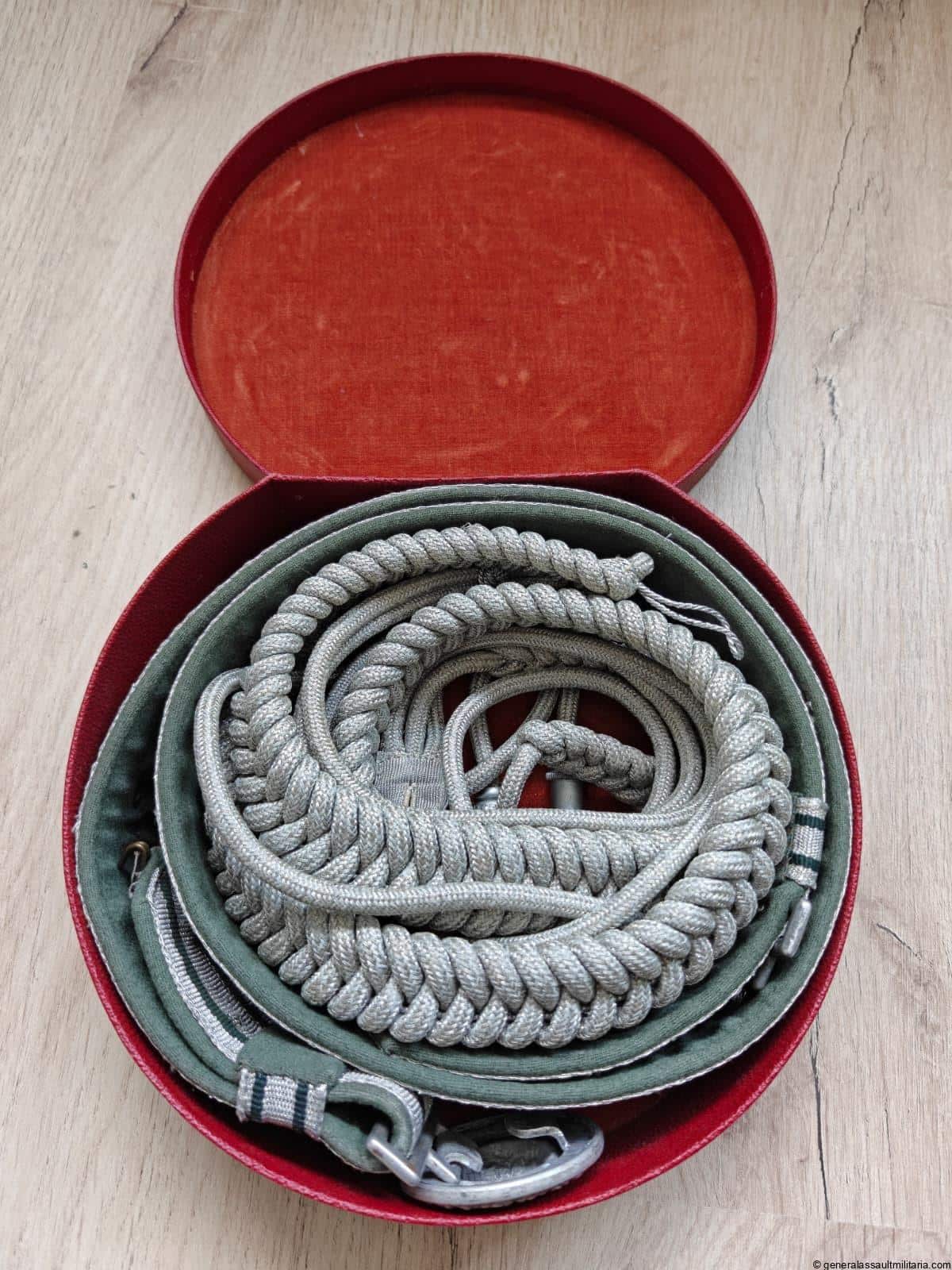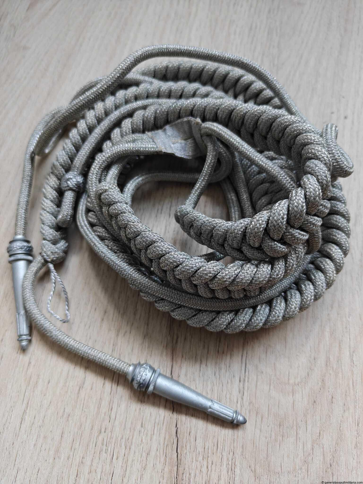 Cased Heer brocade belt, buckle and aiguillette set in wonderfull condition. Box remains in mint condition, like the aguilette. The belt (105cm) is lightly worn and only has one small moth hole on the inside. Great matching set!