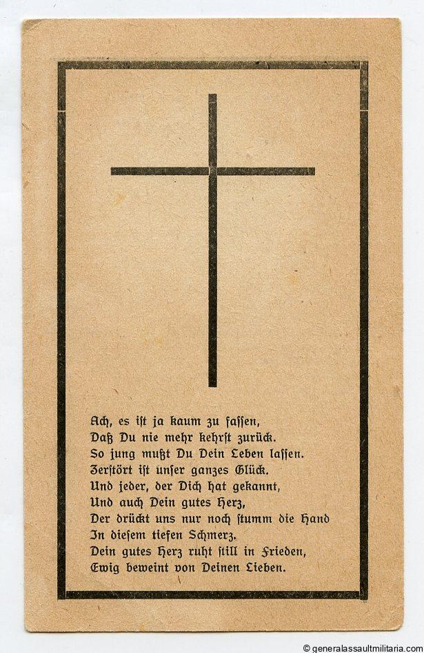 Death card Otto Pellenz – KIA Cherbourg 22.06.1944. Obersoldat Grenadier Regiment Good condition.