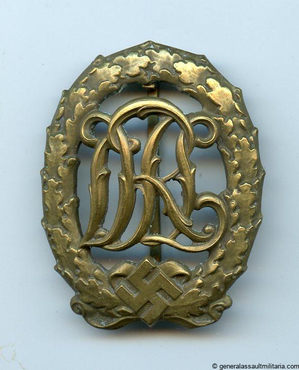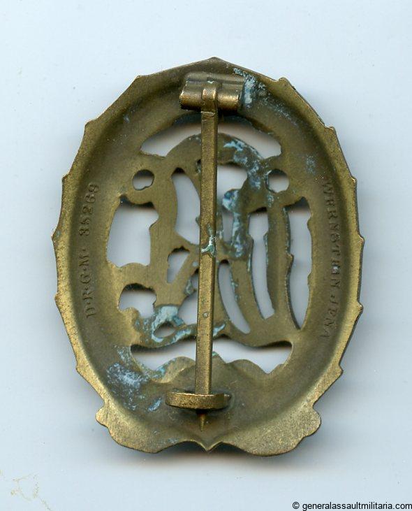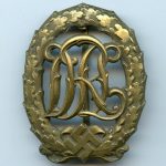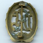 DRL Sports badge – Hermann Wernstein, Jena. Tombac/brass construction with typical Wernstein setup. De badge is maker marked on the back and remain in worn condition with a bit of oxidation on the back side. No damage or repairs.