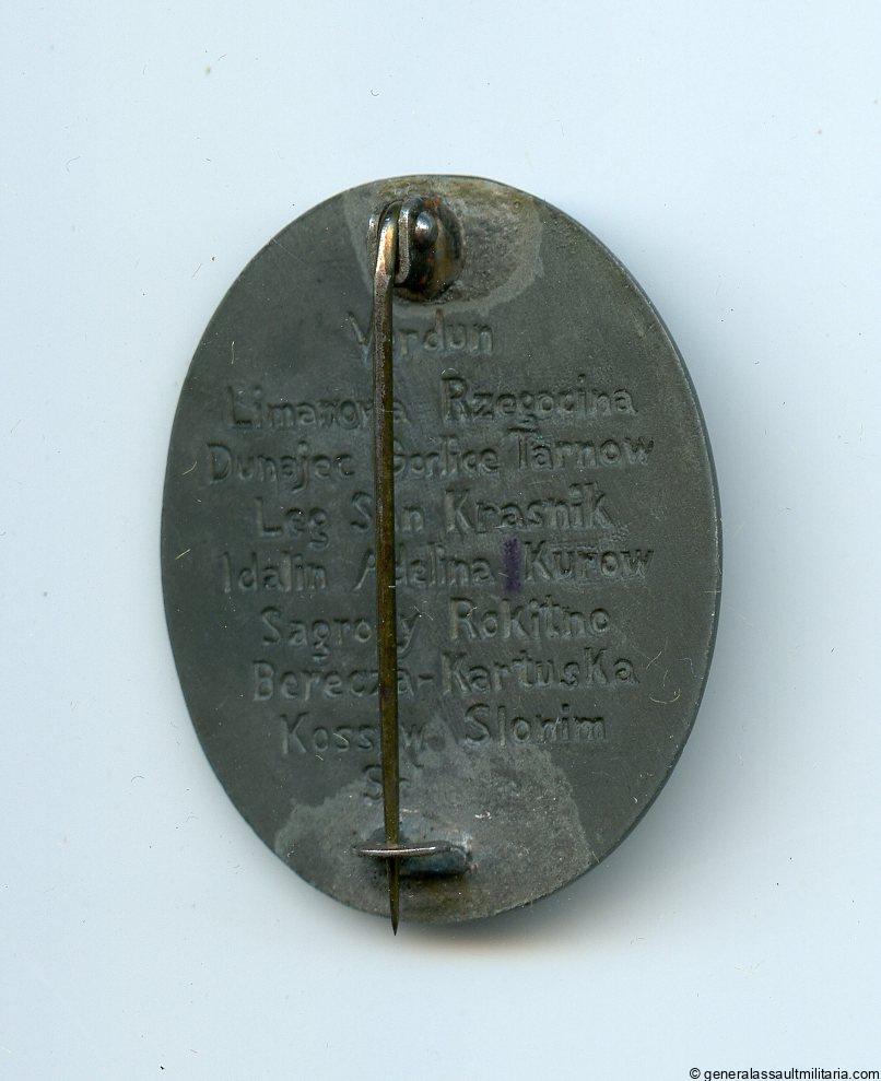 Eiserne 47. Reser. Division badge. Zinc badge with soldered on setup and the names of the places the unit fought at on the reverse. Very good condition.