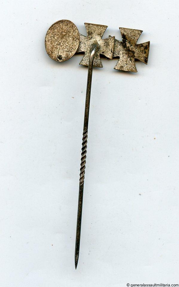 Ek2 + Ek1 + WBS stick pin – 9mm. Tombac construction with both iron cross classes and the silver wound badge. Excellent condition with only light wear showing.