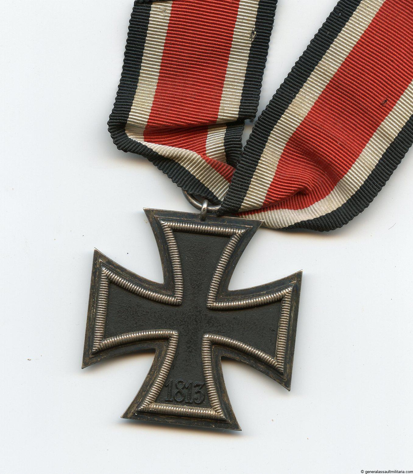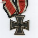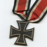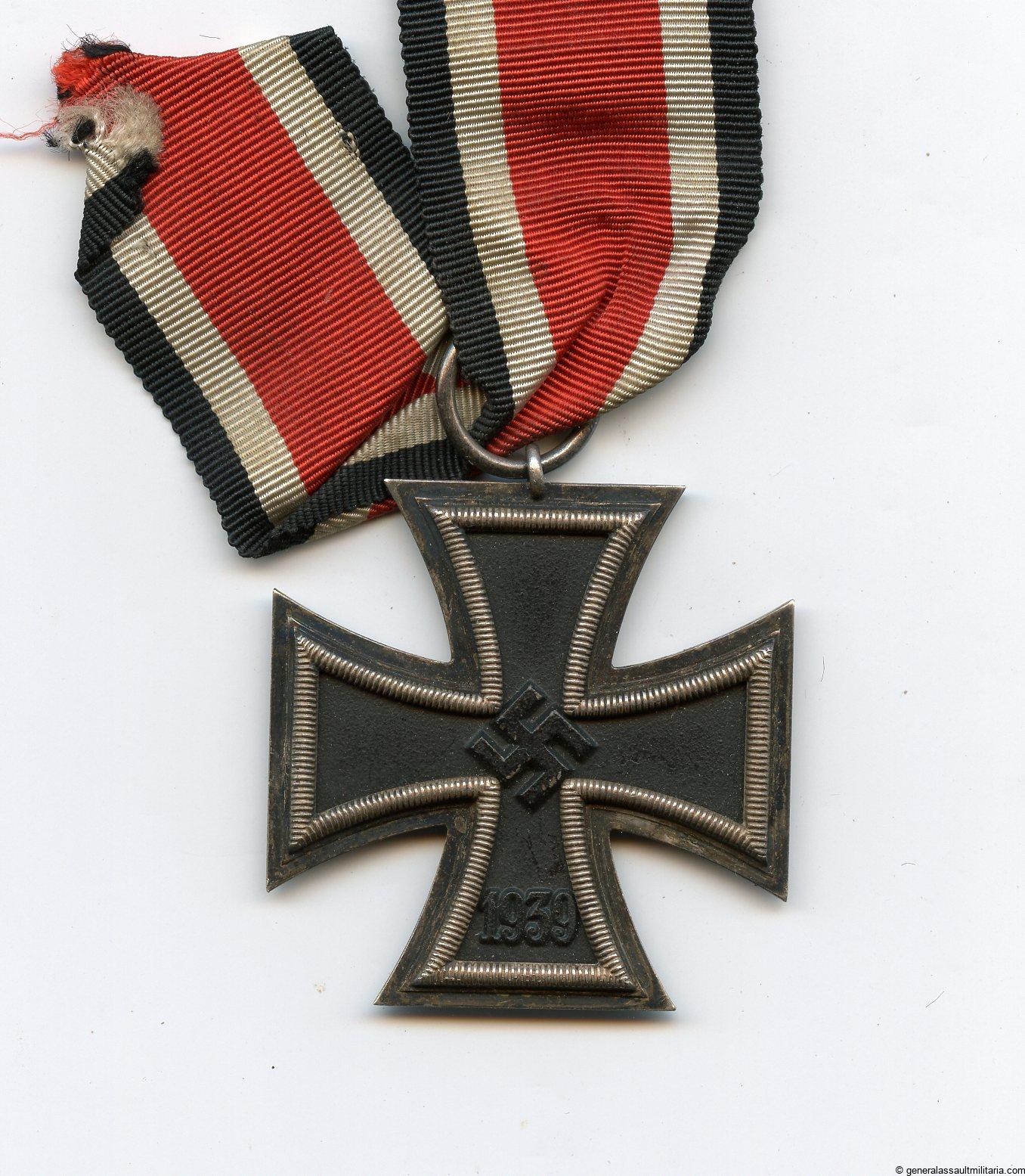 Iron cross second class -UM Fritz Zimmermann, Stuttgart. Three piece construction with typical Zimmermann frame, unmarked example. Remain in good condition with only very minor flaking on the swastika and overall very nicely preserved core. Frame has developed a good patina as is often with Zimmermann crosses, the higher parts of the frame have a slightly brighter appearance giving the cross good contrast. Comes with a 15cm+ ribbon.