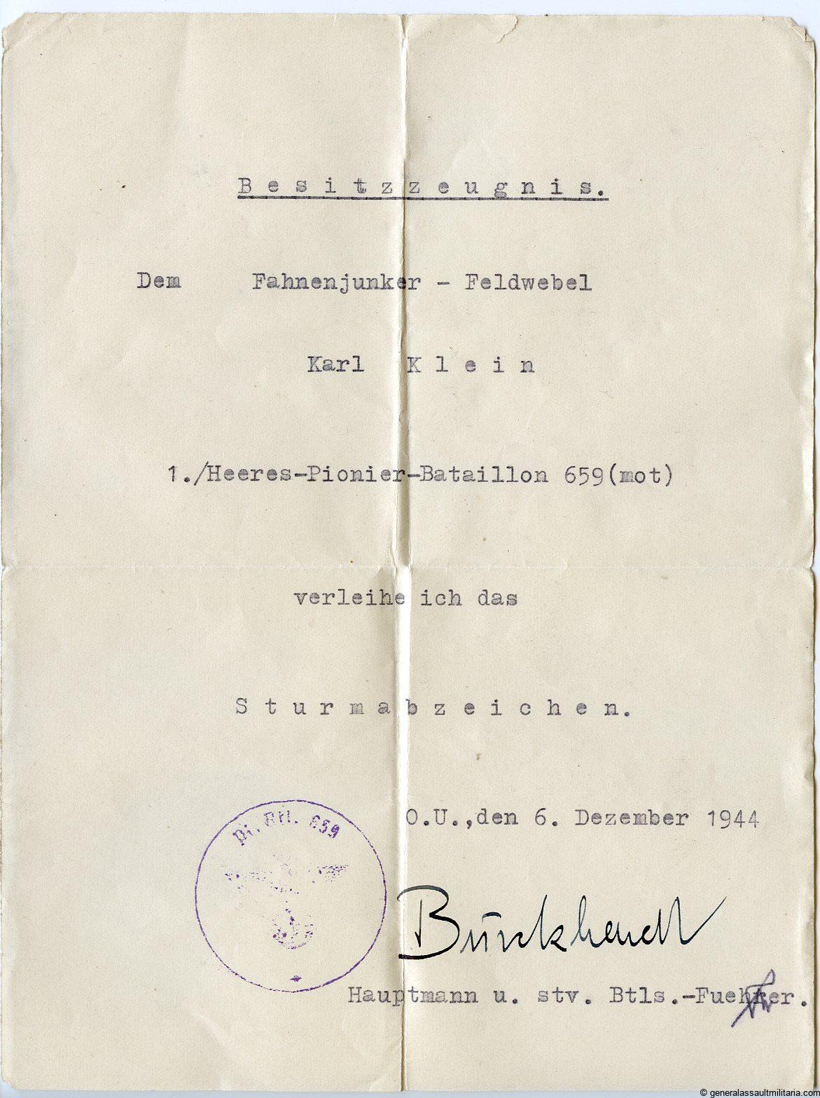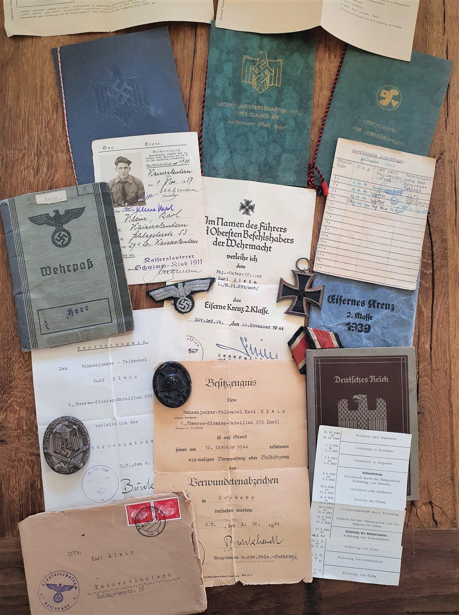 Estate of Pionier Fahnenjunker-Feldwebel Karl Klein 1./Heeres-Pionier-Bataillon 659 (mot) in untouched condition.