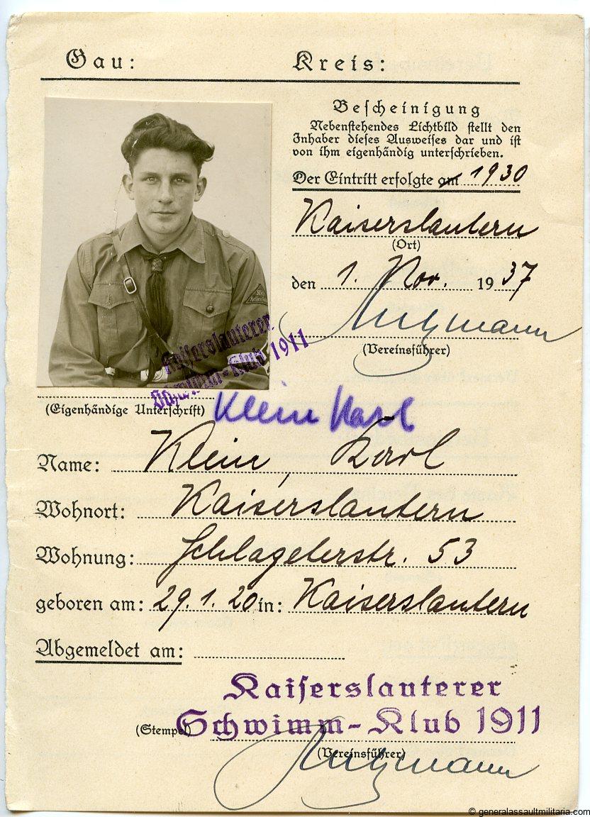 6. HJ ID, some POW letters, sport award booklets and Arbeitsbuch.