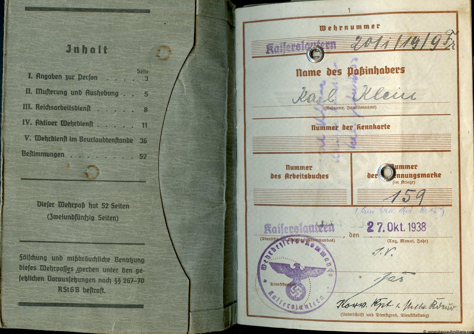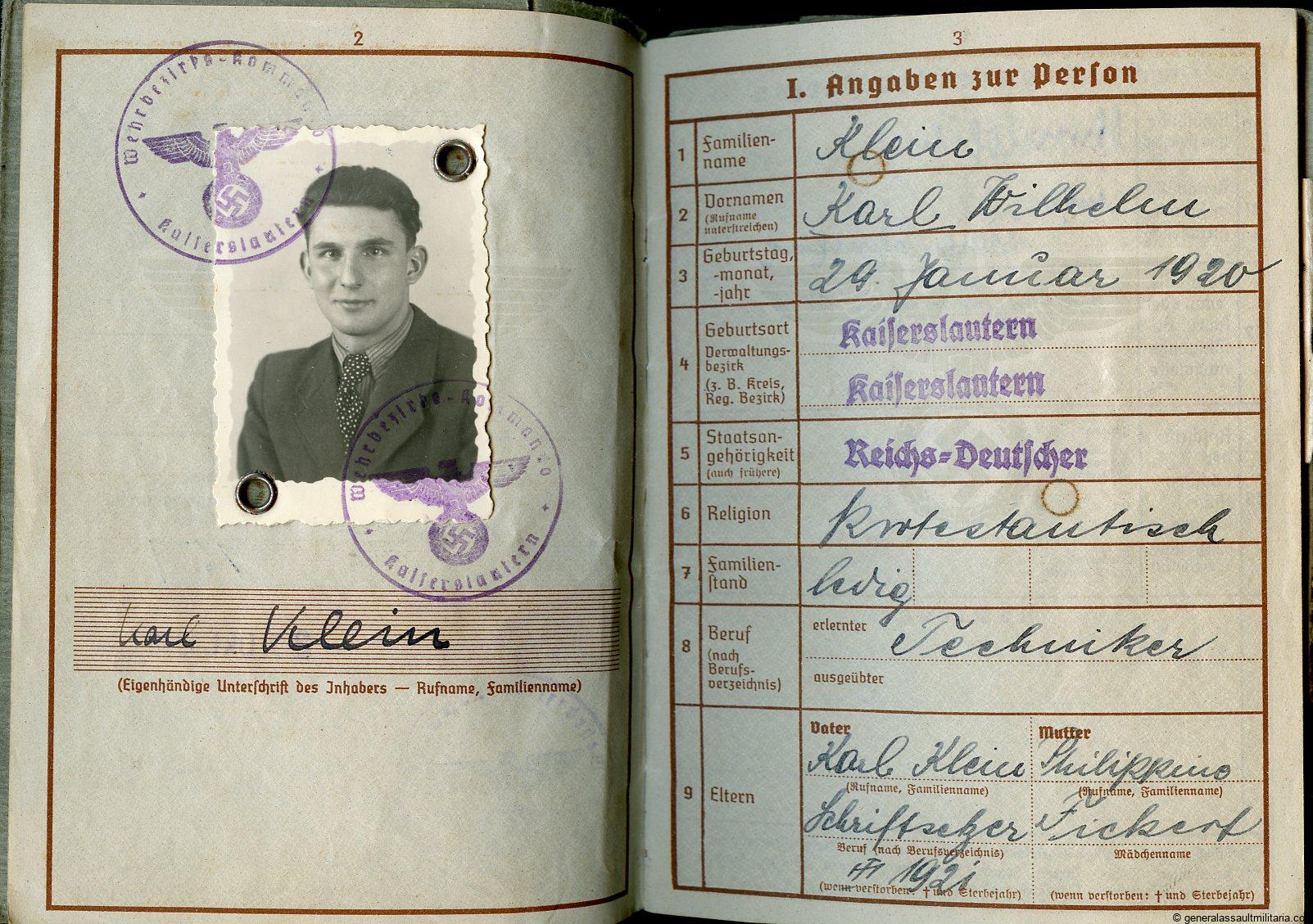 7. Klein his Wehrpass that was filled in nicely over the years.