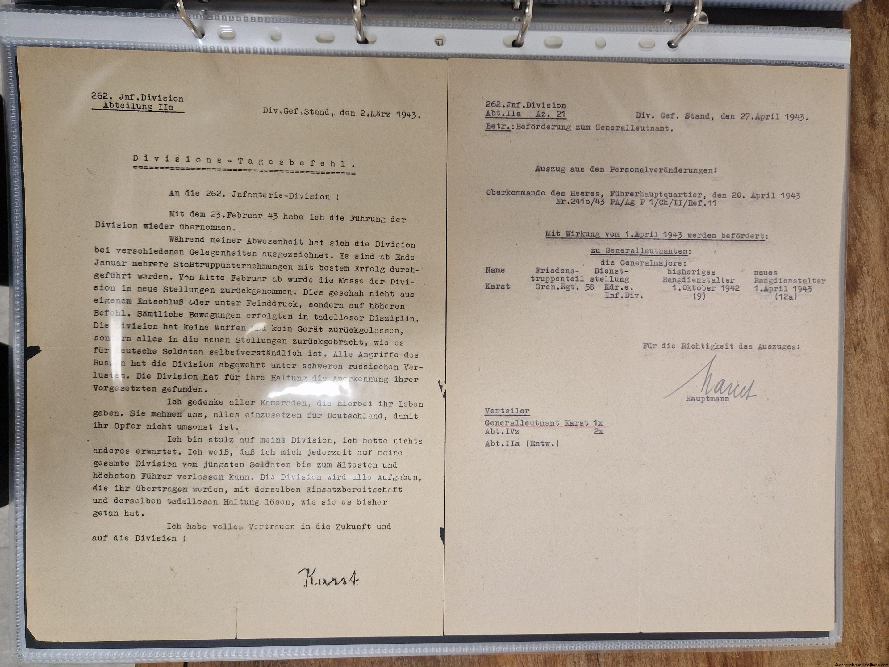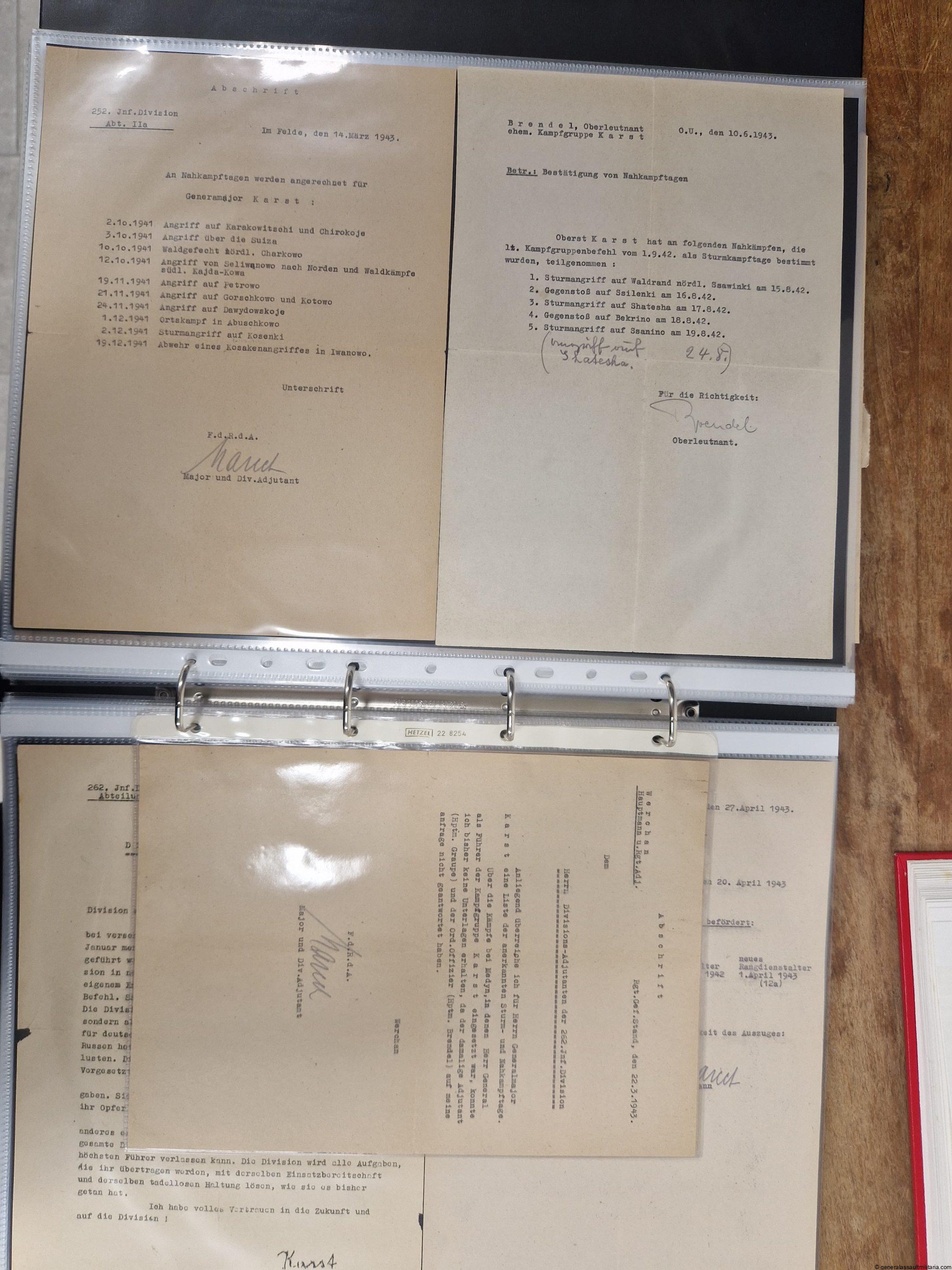 Extensive grouping to Generalleutnant Friedrich Karst – Knight’s Cross recipient