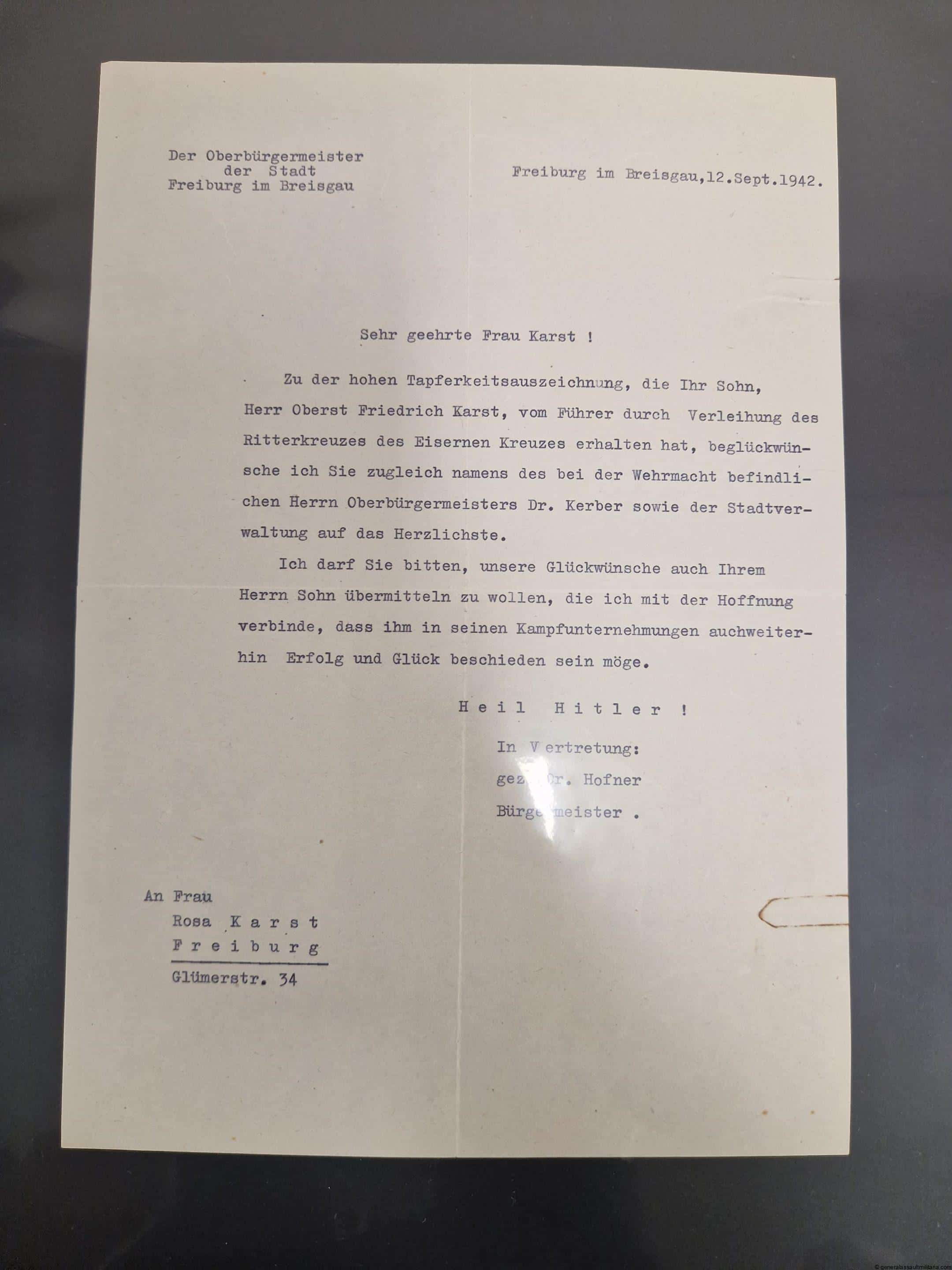 This grouping is among the most extensive known for a Knight’s Cross recipient, offering deep insight into Karst’s personal and military life.
