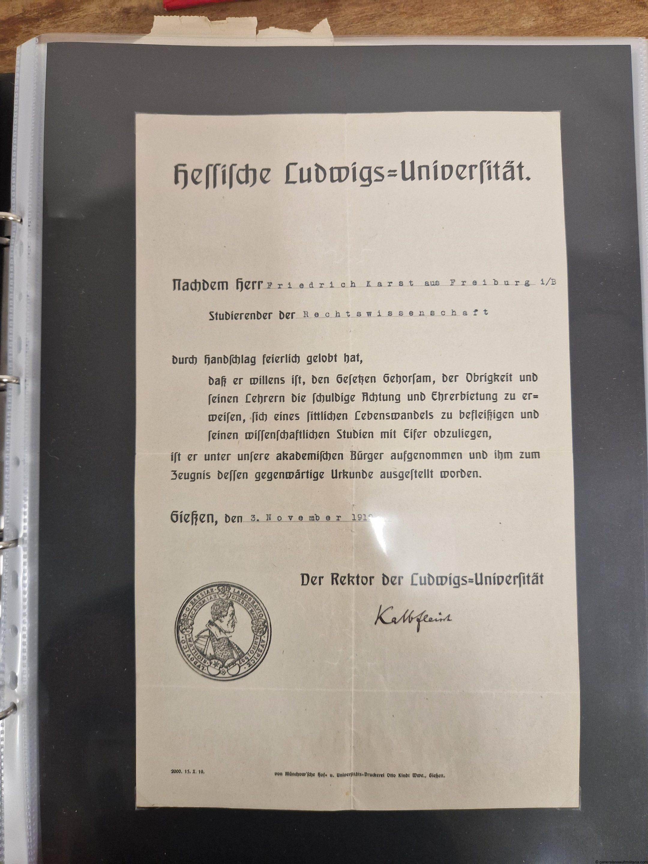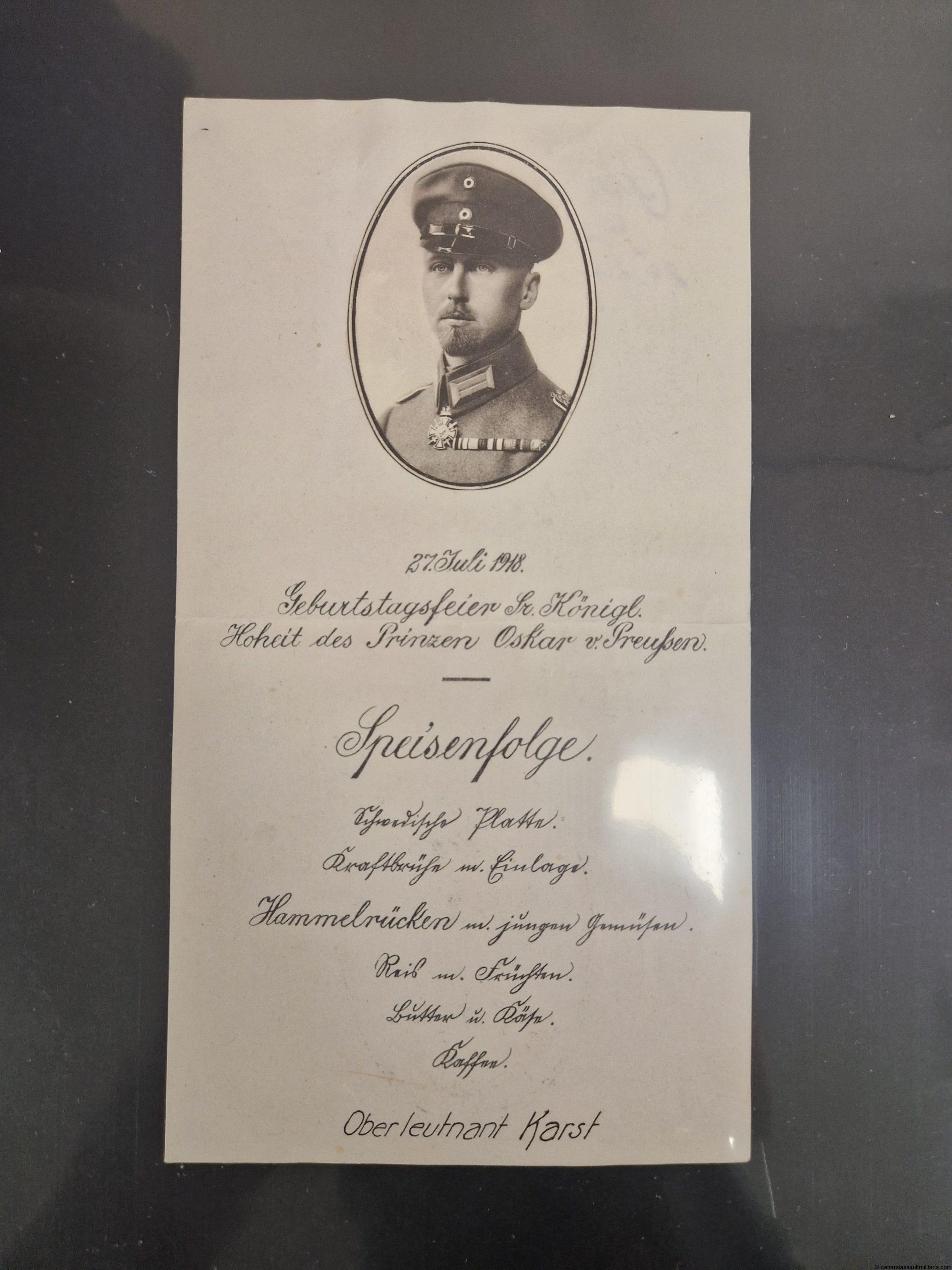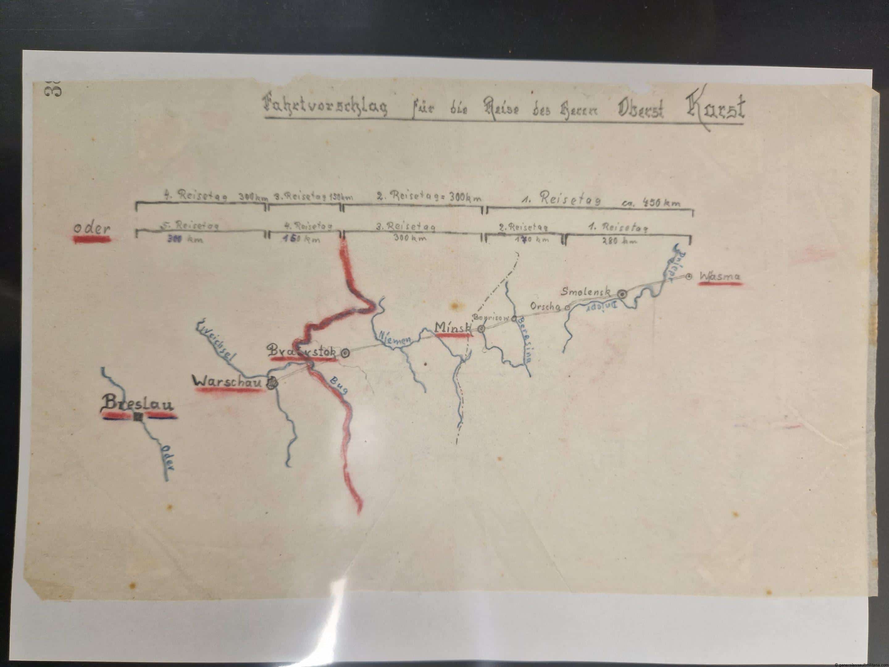 – Personal papers such as Karst’s birth certificate (1893), WWI and WWII service records, promotion documents, hand-drawn operational maps, and congratulatory letters upon awards and promotions.