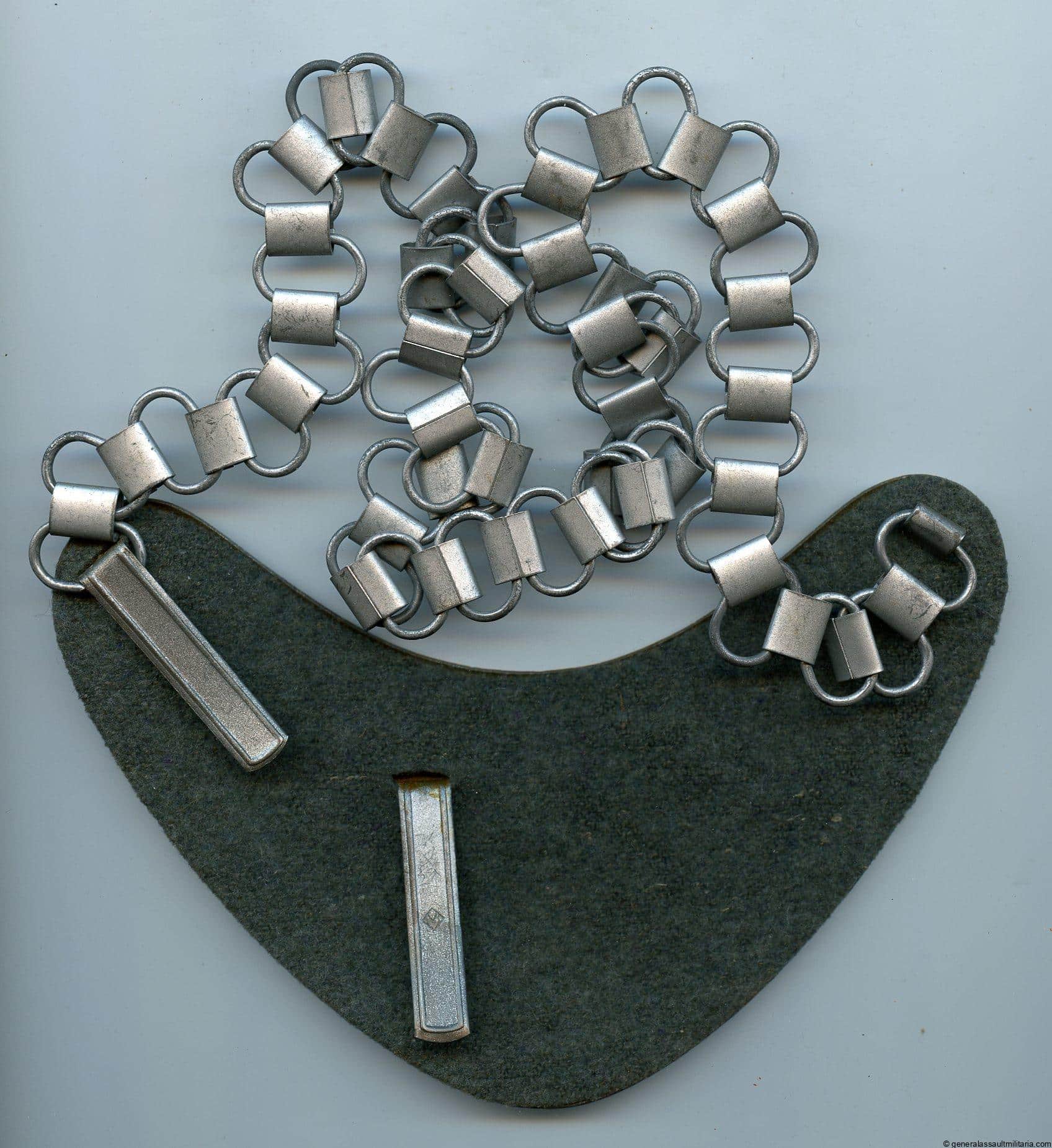 Feldgendarmerie gorget – J.C. Maedicke, Berlin. Steel construction Feldgendarmerie Ringkragen for military police. Remains in unworn condition with light rust from storage over the years, but still nicely finished eagle and silver finished base. Shows no wear what so ever and still has the original green army cloth in excellent condition. The prong is nicely stamped with the Maedicke logo. Top unworn example that has become difficult to obtain.