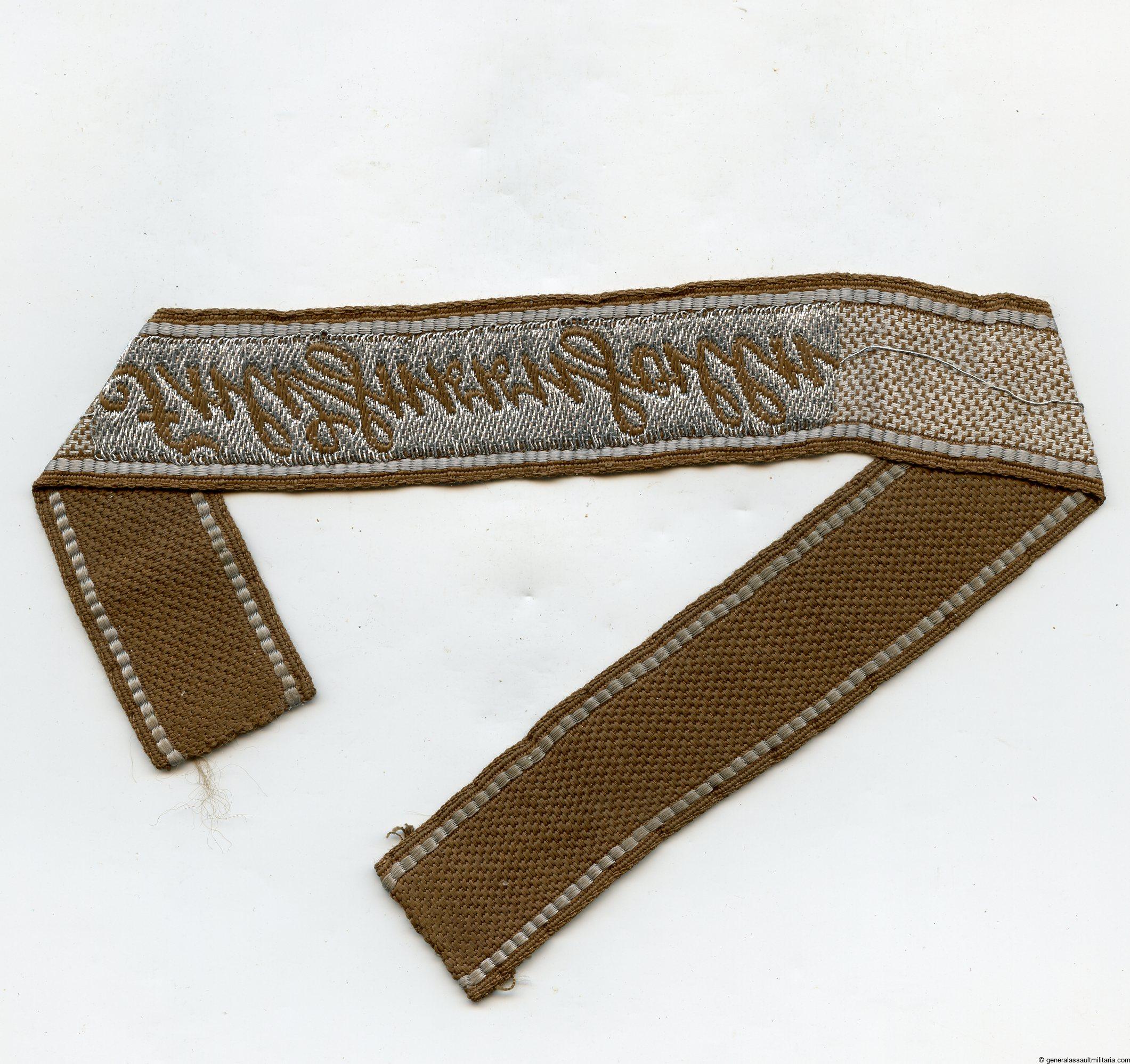 Feldhernnhalle cufftitle – RZM tagged. Flatwire woven RZM Feldherrnhalle cufftitle in uniform removed condition. Remains in only very lightly worn condition and remains clean on the front and back. The RZM tag is fully present, just faulted over at the end. Sought after and good looking cufftitle.