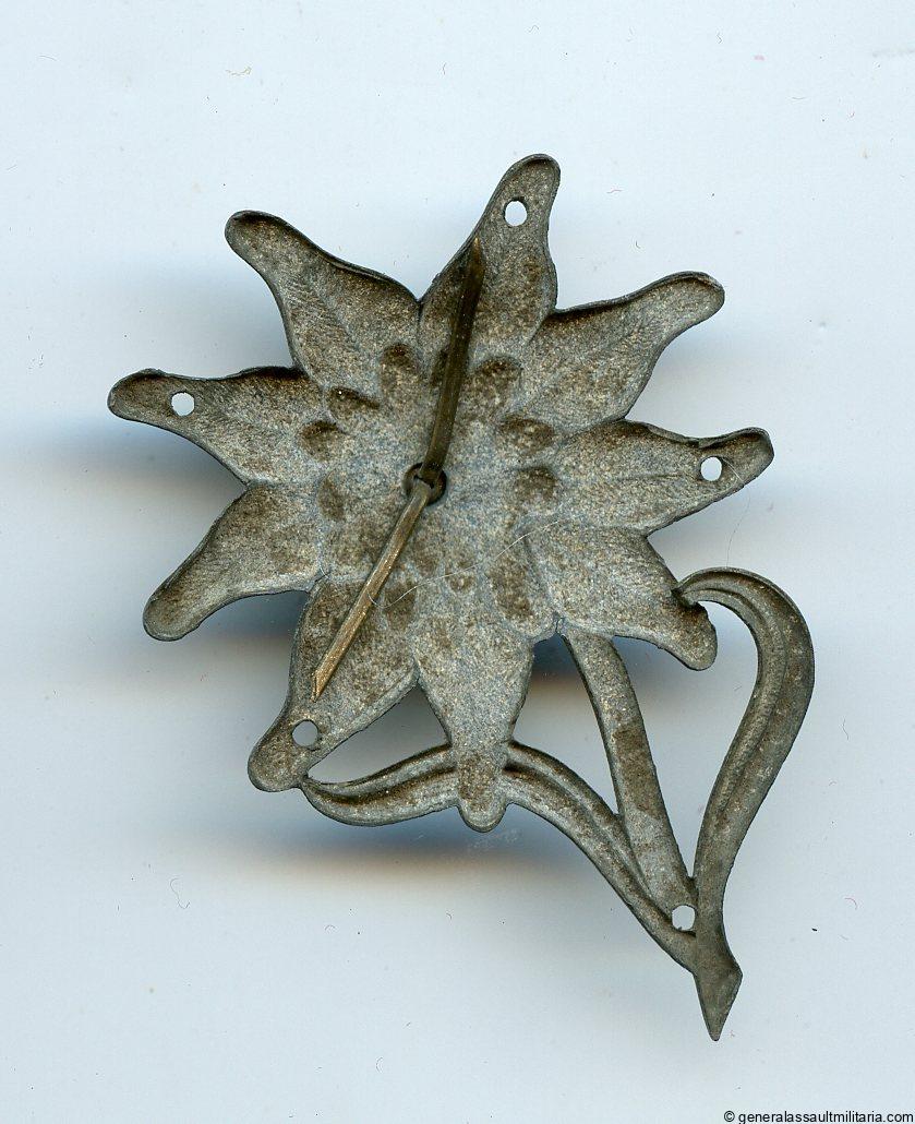 Gebirgsjäger Edelweiss cap insignia. Mid to late war hollow zinc example. Remains in lightly worn to unworn condition.