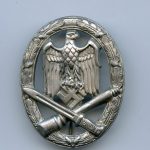 General assault badge – Assmann & Söhne, Lüdenscheid. Early war steel construction GAB with silver finish. Remains in lightly worn condition, maker marked on the back of the swastika with the small Assmann logo and still has nearly all finish remaining. uncommon steel Assmann in very good condition.