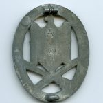 General assault badge produced by Assmann & Söhne. Well worn with some of the chrome finish remaining. The badge came from the 4th Mould Assmann used to produce these badges. Sadly the pin broke at some point in time.