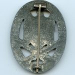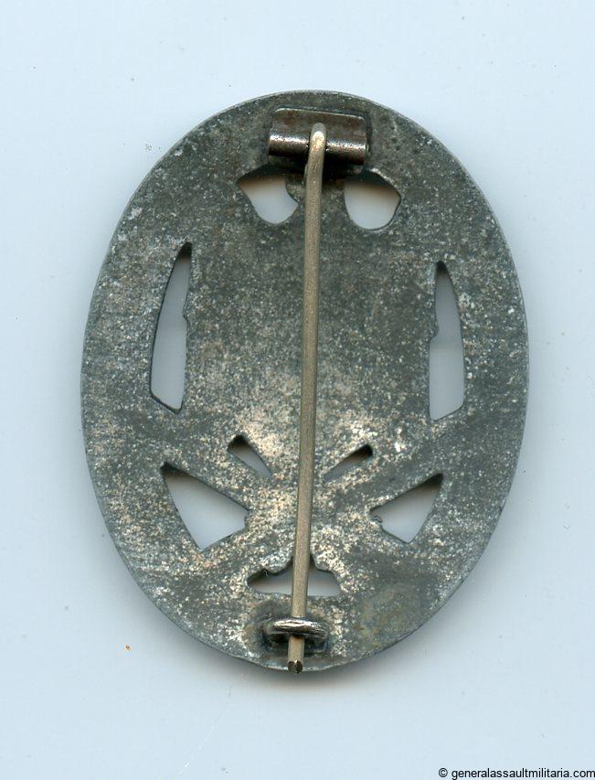 General assault badge made by Berg & Nolte Lüdenscheid. Well worn badge with good signs of wear. The badge holds traces of its silver finish and has a slightly curved appearance as commonly encountered on the B&NL general assault badges. A heavy zink badge without damage or repairs.