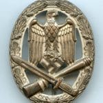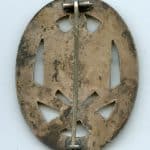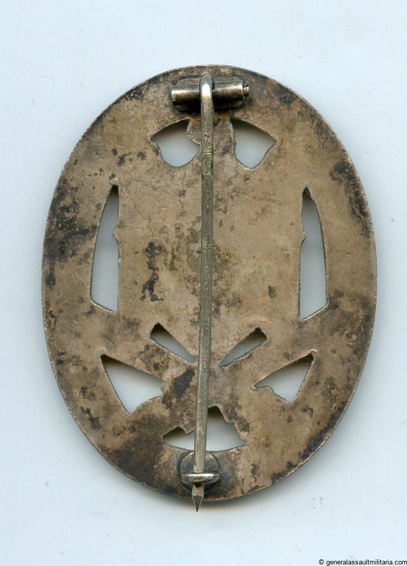 General assault badge – Cupal Maker. Mid war solid cupal GAB by a still unknown maker. Remains in lightly worn condition and shows nearly all the finish still present in lightly patinated condition. Sought after and very well detailed cupal variant.