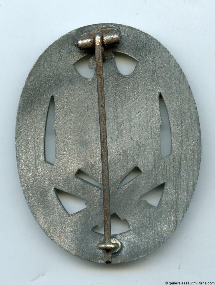 General assault badge – ‘Deep pan’ variant. Mid to late war solid zinc ‘Allgemeines Sturmabzeichen’ with unknown maker ‘Deep pan’ design. Remains in every good condition with a good part of the ‘Glanzverzinkt’ finish remaining and only minimal wear. Unique and interesting design with slightly vaulted appearance. Very good quality GAB!