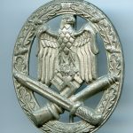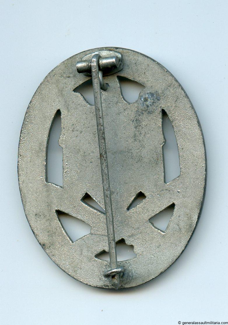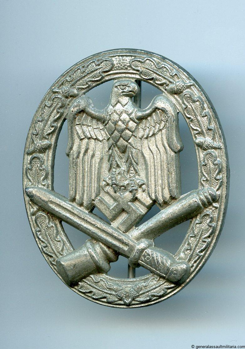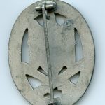 General assault badge – Friedrich Orth, Wien. Mid to late war zinc GAB with the FO Vienna design die and the catch soldered into a pre drilled hole. Very well preserved badge with all it`s finish remaining. Top Orth example!