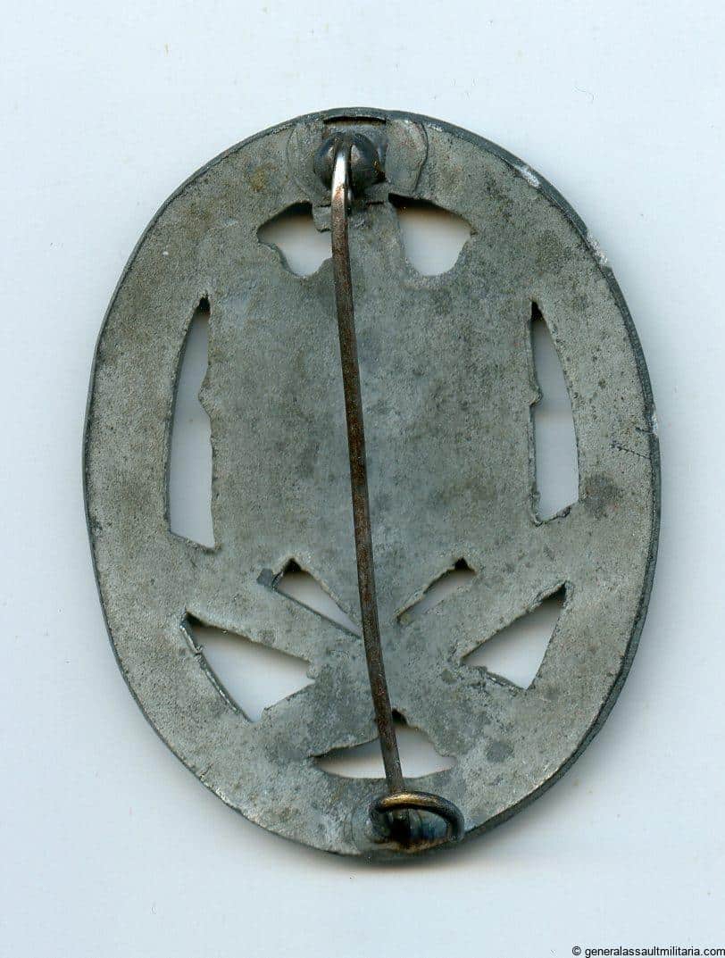 General assault badge – Rudolf Karneth, Gablonz. Mid to late war semi hollow GAB with RK design and crimped setup. Remains in lightly worn condition and has a few oxidation spots on edges. Good example with some age too it, but still a very clean and tight crimp.
