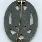 General assault badge – Unknown ‘Cupal maker’. Solid zinc GAB which can also be found in cupal. Shows good wear and has the silver wash finish faded in color but still present on the badge. One of the more common but overall good quality GABs. Catch is in slightly closed position.