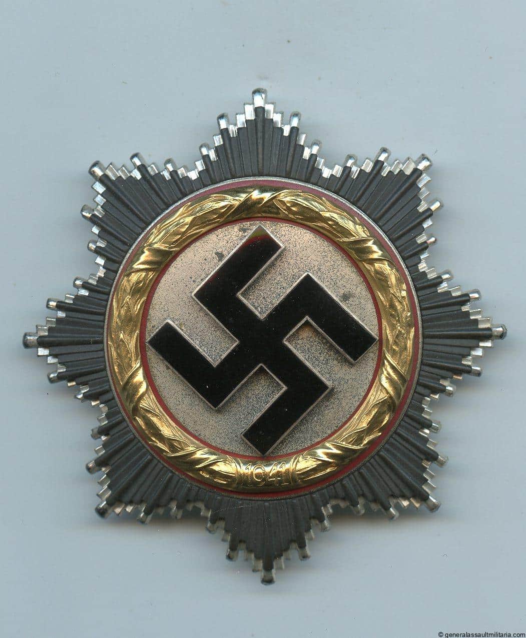 German cross in gold – MM20 C.F. Zimmermann, Pforzheim. Early war heavy tombac back plate ‘Deutsches Kreuz in Gold’ with PkZ mark 20 under the pin. Directly soldered small Zimmermann catch, gilded wreath and white finished sun background. Remains in near mint unworn condition with all the gilding, grey finish and silver plating still present. The background of the enamel swastika shows a slight patina. The cross was never worn and the enamel is fully scratch free. Top cross and very difficult to find an unworn heavy Zimmermann.