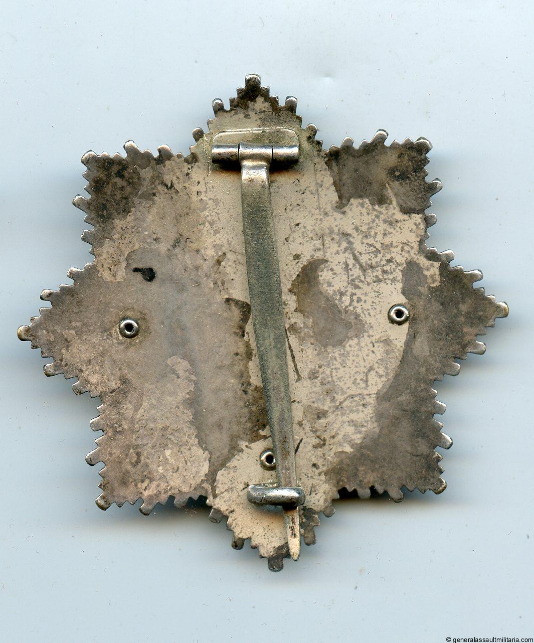 German cross in gold – MM20 C.F. Zimmermann, Pforzheim(heavy). Early war tombac back plate ‘Deutsches Kreuz in Gold’ with PkZ mark 20 under the pin and the typical Zimmermann flaw barely visible, indicating an early production. Remains in good worn condition with still nicely bright finish on the reverse, slightly curved shape and some wear to the black enamel swastika. The outer start burst wreath shows nice wear on the higher area`s giving it good contrast with the black finish. White backing is slightly patinated and remains full uncleaned. Very nicely worn heavy Zimmermann!