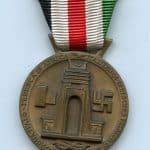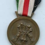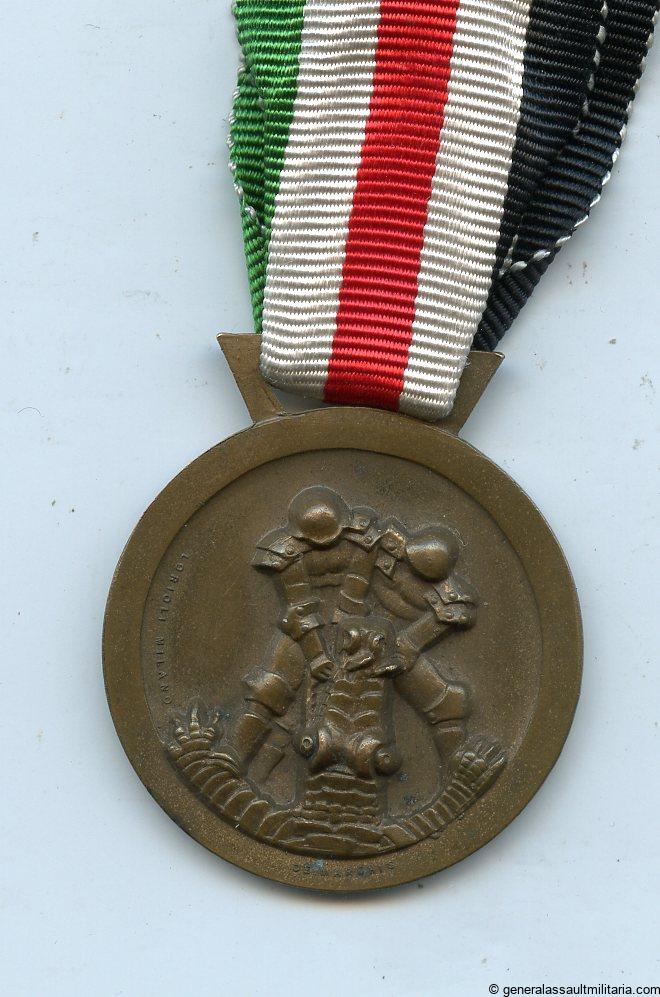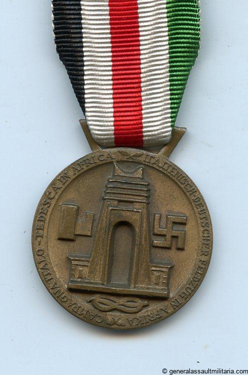 German-Italian Africa medal – Lorioli Milano. Tombac construction medal for the German-Italian campaign in Nord-Africa. Remains in very good condition and held the brown color nicely. Good looking medal with an appealing design. Maker marked on the inside of the rim. Comes with a normal size ribbon(10cm).