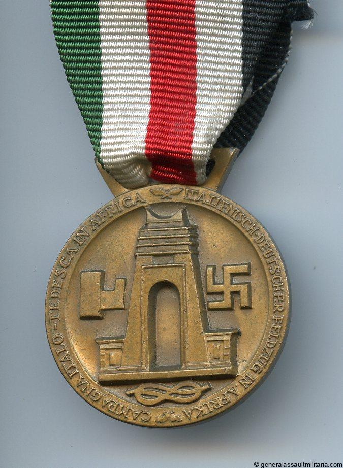 German-Italian Afrika medal – Lorioli Milano. Tombac construction medal for the German-Italian campaign in North-Africa. Remains in perfect mint condition with all the bronze finish present and held the bronze color nicely. Good looking medal with an appealing design. Maker marked on the inside of the rim. Comes with a long ribbon, 10cm+ .