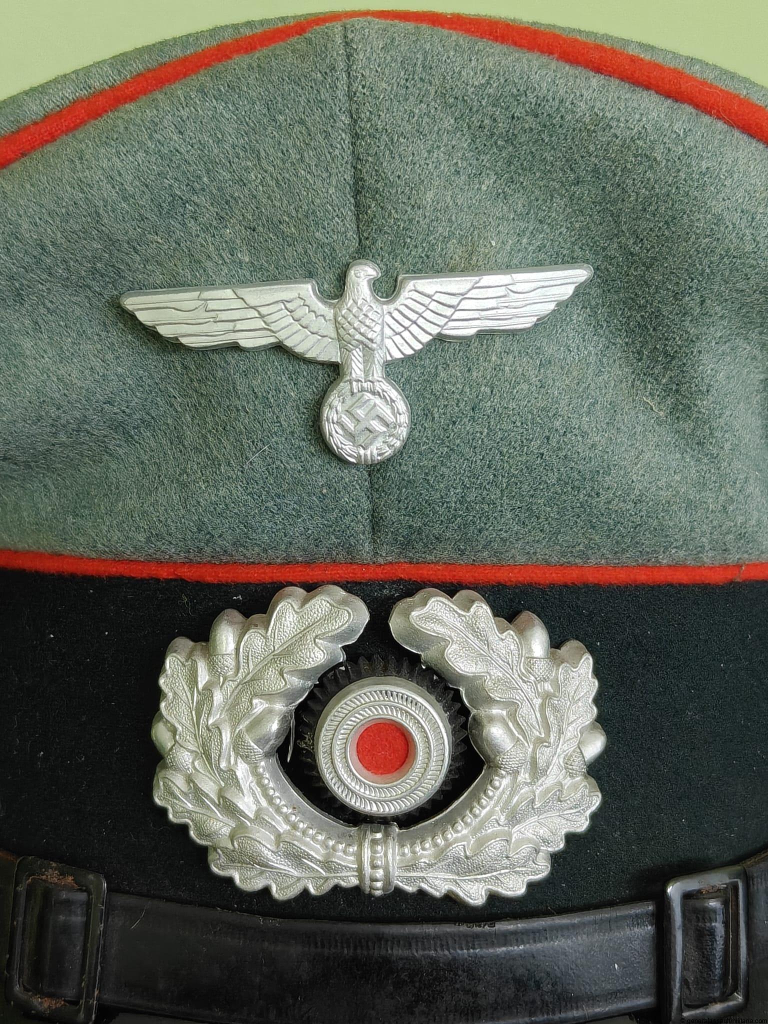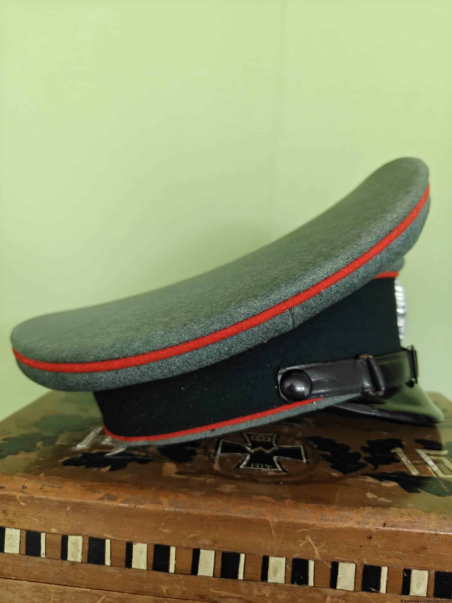 Heer Artillery EM/NCO’s Visor Cap in very good condition. Size 55 1/2. Near mint condition, has only a few tiny mothnips.