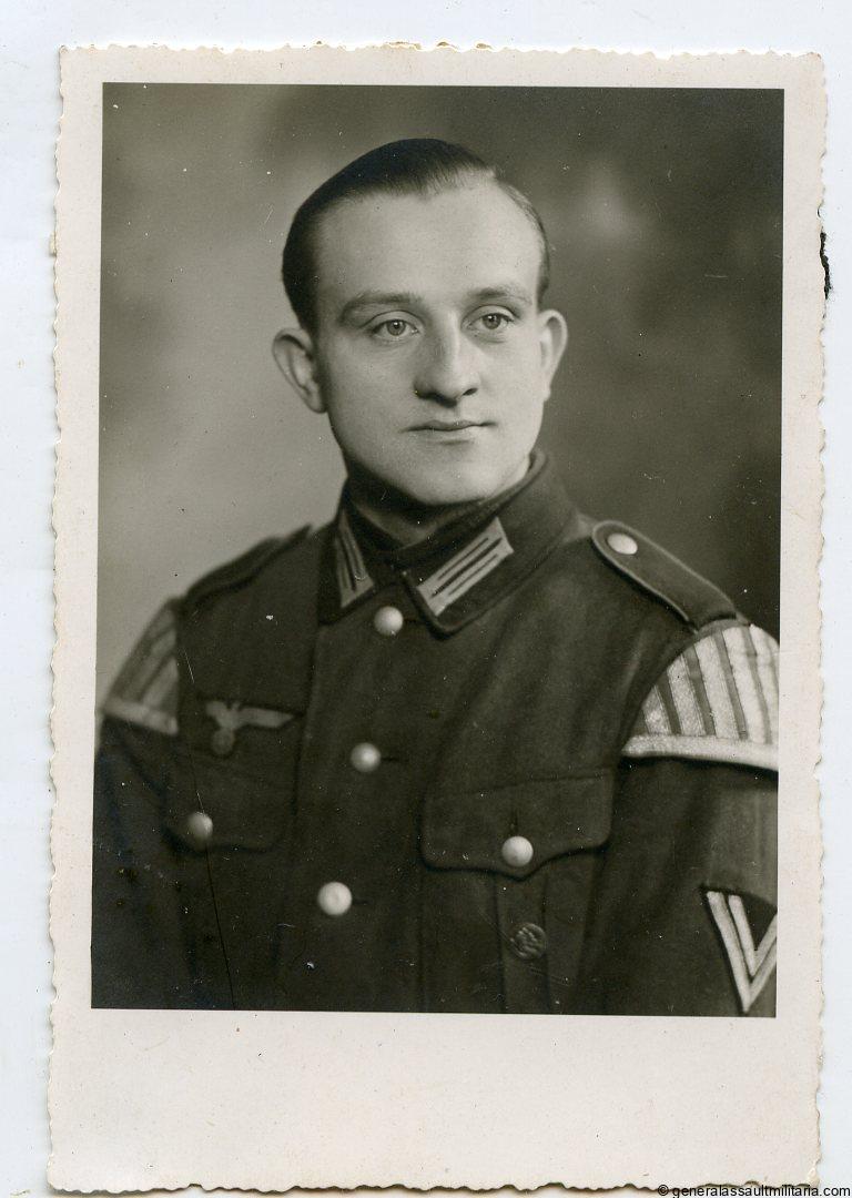 Heer infantry portrait with Gespenter division ‘Traditionsabzeichen’ in wear. Very interesting photo with the Ghost division badge in wear. Postcard size, with atelier stamp and album removed at some point in time.