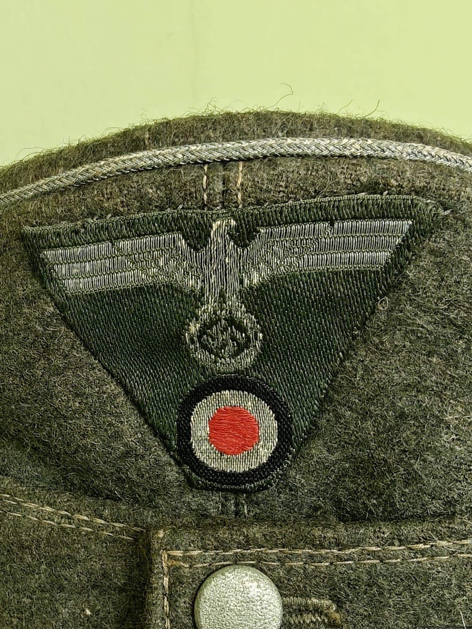 Heer m43 officers field cap (size 56) in amazing condition. Lightly worn, used but not abused. Marked ‘Qualitäts Marke’ on the leather sweatband. Top cap for any collection!