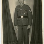 Full Heer panzergrenadier portrait with Bronze PAB, Ost medal and Ek2 ribbon, Ek1 and wound badge in silver. Remains in very good condition with no staining or damage. Album removed and nicely stamped at the bottom with the ‘atelier stamp’.