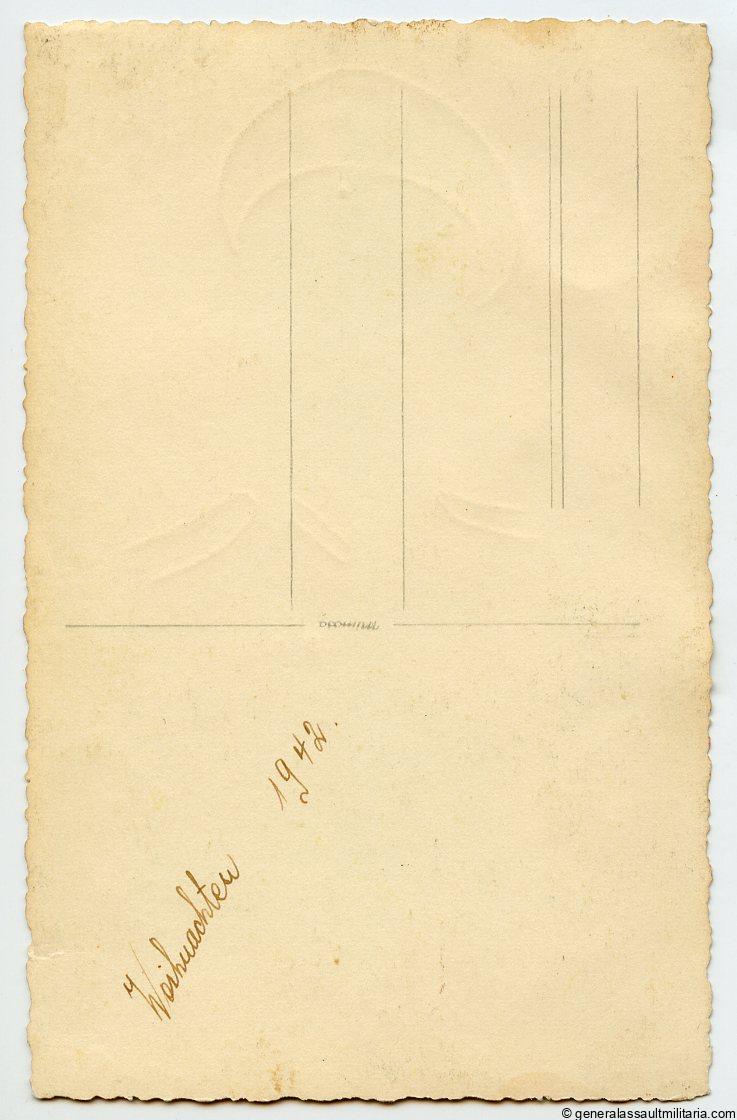 Heer Panzerjäger color portrait. Very uncommon portrait of a Panzerjäger soldier with GAB(Early Karneth), WBB, Ek1 and Ribbon bar with Ek2, Ost, west wall medal in wear. Portrait shows pink piping in wear. Postcard size, Mimosa portrait paper, dated Christmas 1942. Killer portrait!